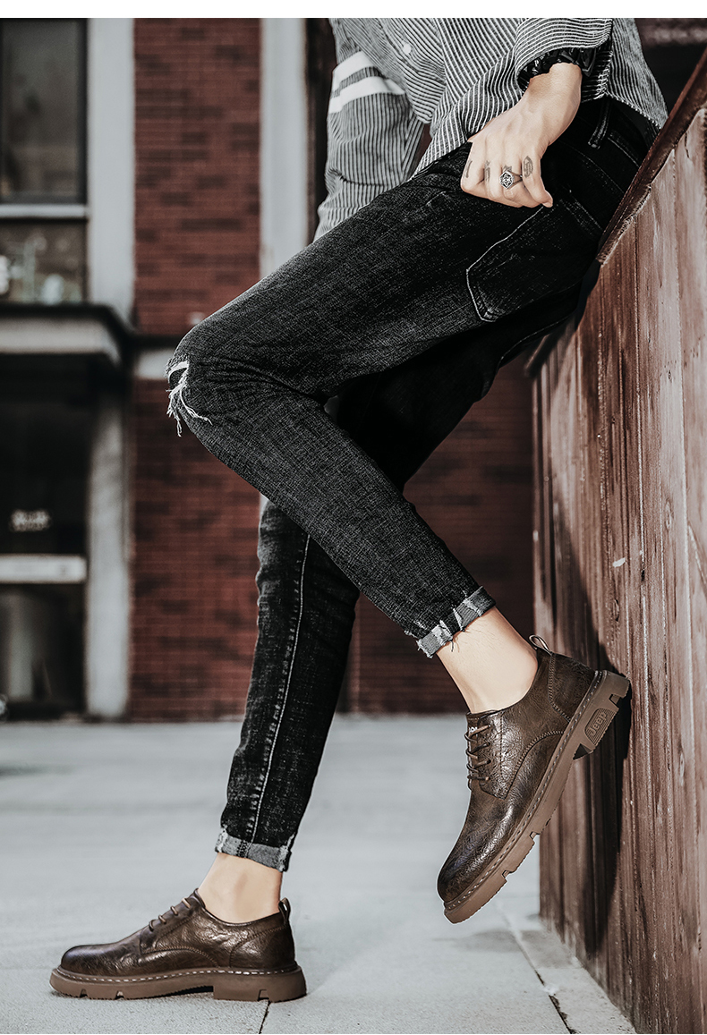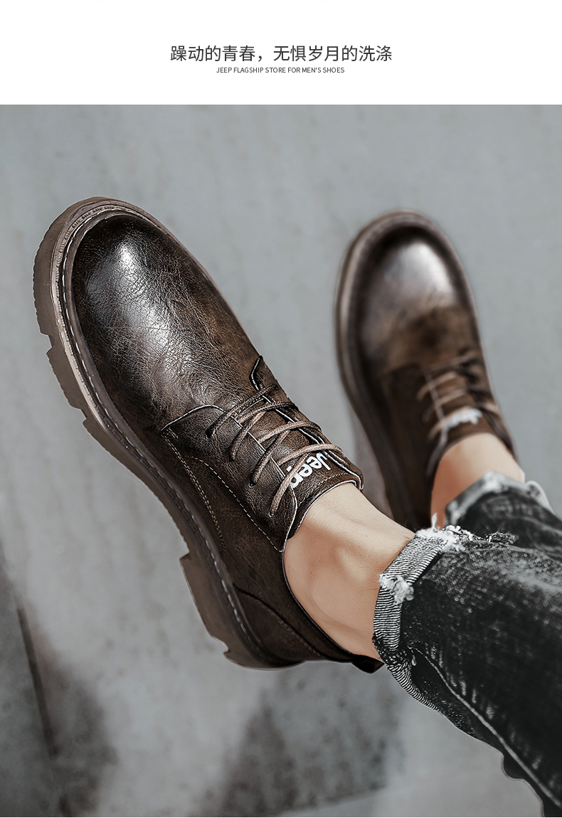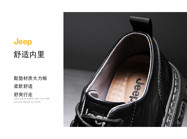 • 吉普 Jeep 男 英伦风 真皮低帮软底皮鞋