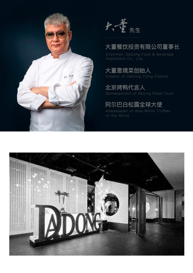 北京大董成立于1985年4月28日。2001年由国营改制,总经理董振祥被朋友们昵称为大董,由此得名。向来以高端定位的大董烤鸭店是外宾品尝烤鸭的主要去处之一。