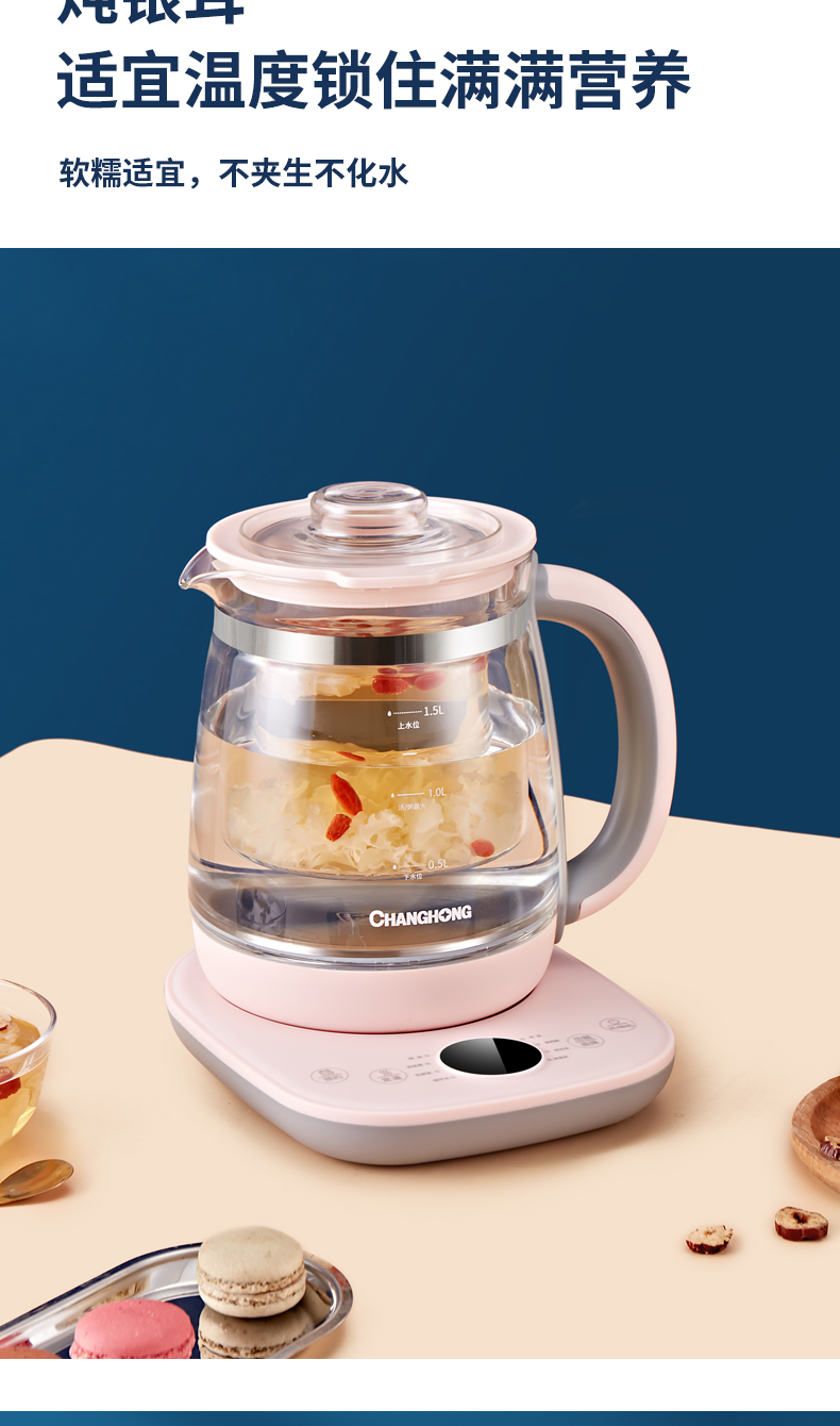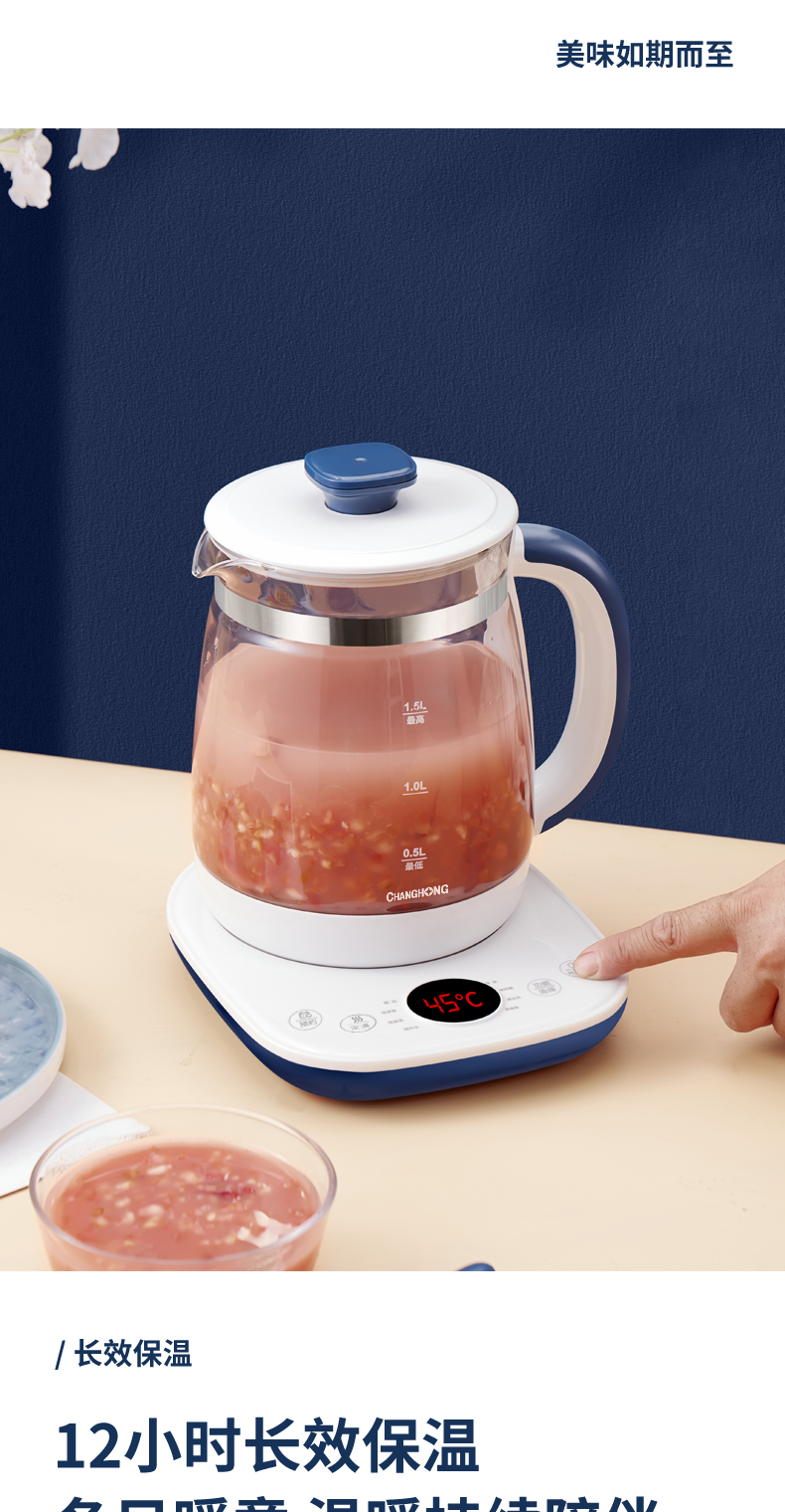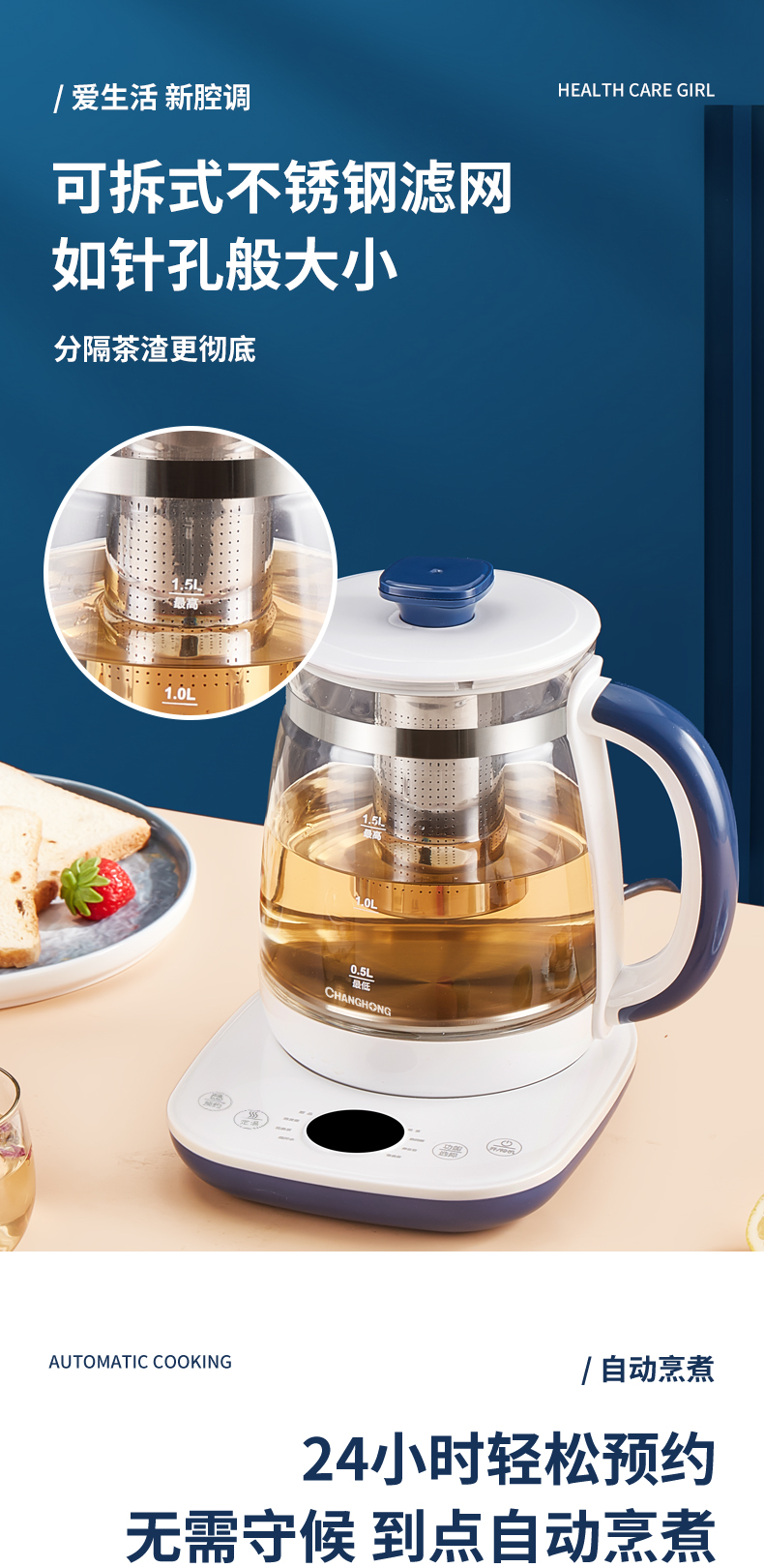 长虹 全自动煮茶器养生壶,加厚高硼玻璃材质,不惧冷热,煮茶,泡发煮,花果茶、药膳,养生汤等八大功能,一键启动,自动静音烹煮,24小时智能预约,12小时长效保温,居家健康养生之选!