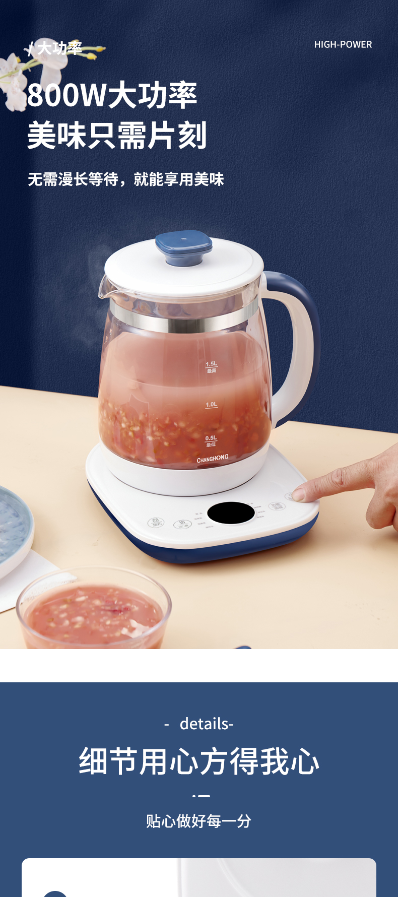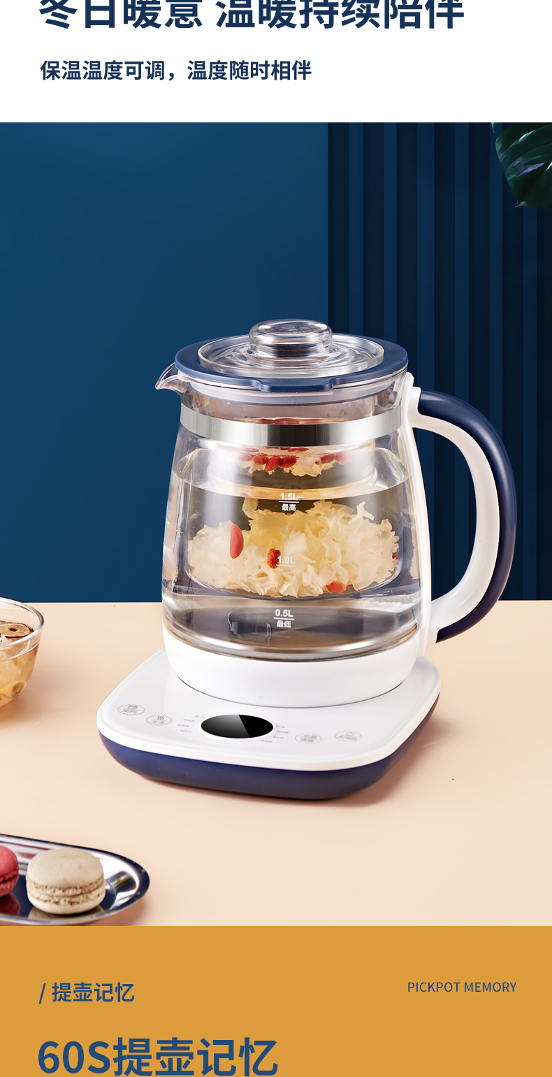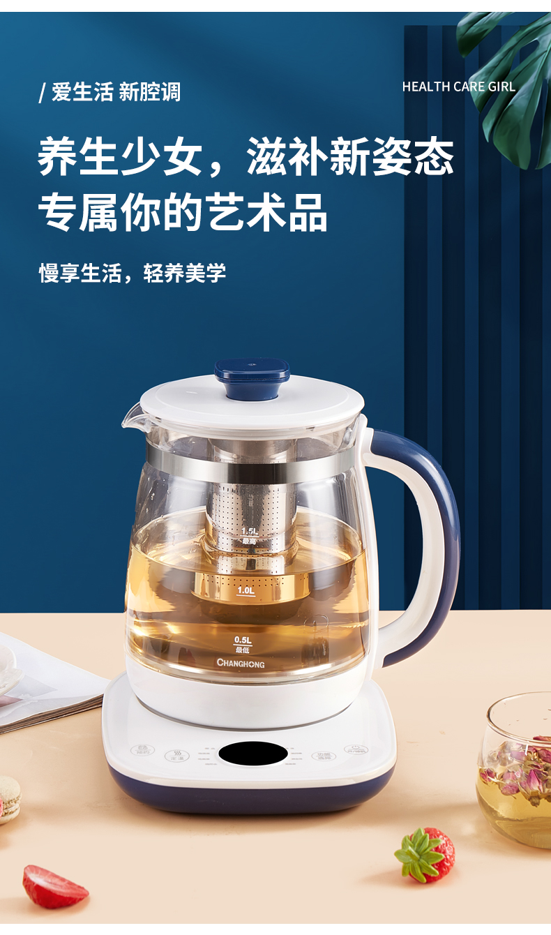 长虹 全自动煮茶器养生壶,加厚高硼玻璃材质,不惧冷热,煮茶,泡发煮,花果茶、药膳,养生汤等八大功能,一键启动,自动静音烹煮,24小时智能预约,12小时长效保温,居家健康养生之选!