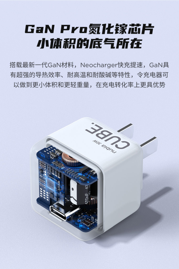 nubianeocharger散热采用纳米技术红外散热,加快热量扩散,高效散热。采用分段式快充,手机快充满时,自动切换为涓流模式,保护电池健康。内置九重安全保护,不跳屏、不闪屏,保护电池,为您的充电过程保驾护航。一个GaN充电器,轻松搞定多个设备独有的智能芯片,自适应不同系统,广泛兼容手机、平板、笔记本电脑、Switch游戏机,小风扇、加:湿器等多种设备。