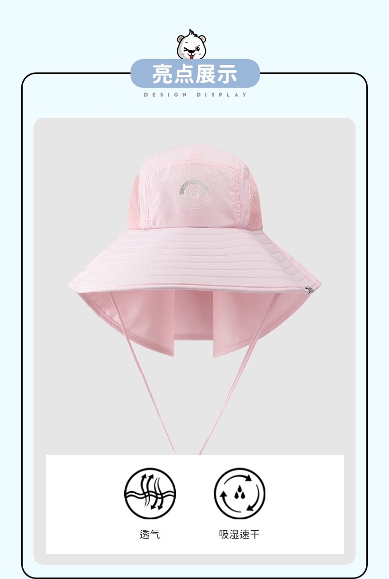 天猫探路者童装旗舰店169元,可领110元优惠券,实付59元到手;3色可选。2022春夏新品,吸湿速干,后侧加长,护颈防晒,不需要时可以收起。