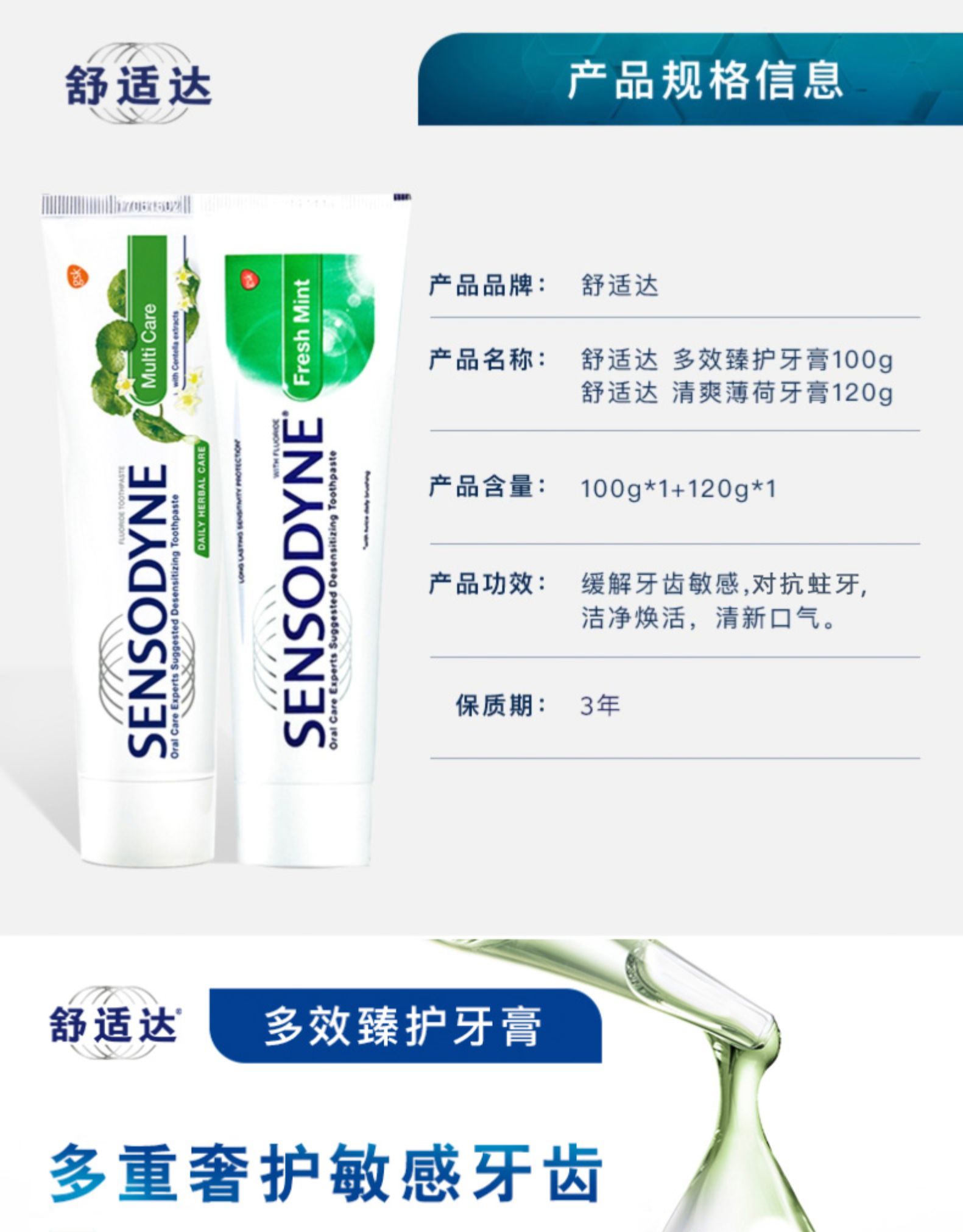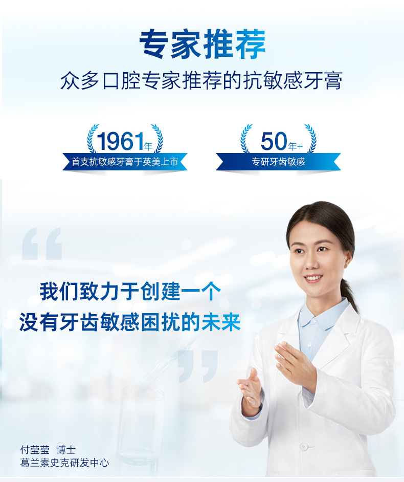 SENSODYNE舒适达为葛兰素史克旗下品牌,自1961年起始终致力于提供有效治疗牙本质敏感症状的方法,是专业的抗敏感牙膏品牌。和普通牙膏相比,舒适达牙膏用量很少却可以达到抗敏感的目的和效果,故定价较高。抗敏的同时减少对牙齿的刺激,甚至可以少量涂抹至敏感牙齿上。夏天冷饮刺激,抗敏牙膏经常使用可以缓解症状。