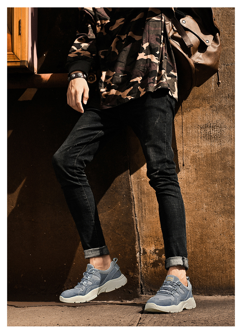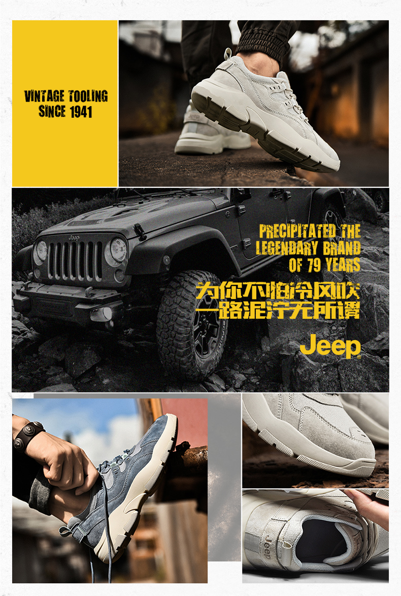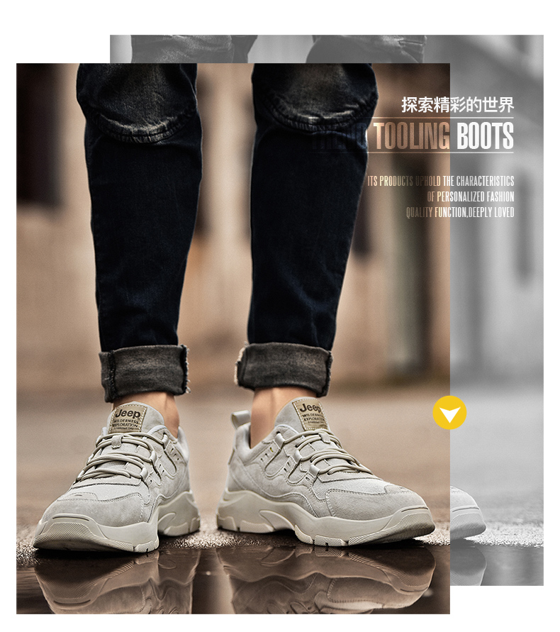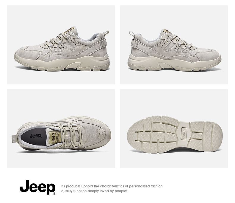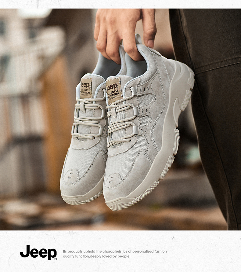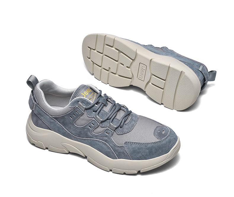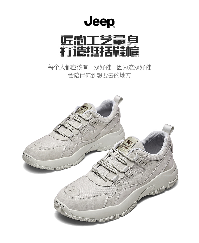 这款Jeep 男休闲户外软底运动鞋,鞋面是用头层猪皮+织物制成,保留了皮料本身的细腻毛孔,提高了透气性和柔软到度,摸着的手感也好。