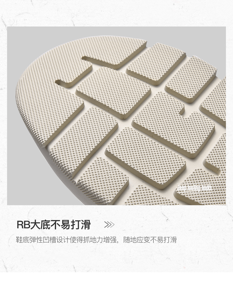 织物衬里,大力棉鞋垫,RB鞋底的弹性凹槽设计使抓地力增强,行走间不易打滑。高密度编织而成的鞋带,好看不易松散,完美搭配鞋身。