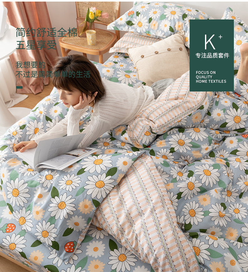 这款紫罗兰 全棉北欧风床品3/4件套,全棉面料,舒适透气,色调光泽,清新柔和;AB版设计,高雅亮丽的花型与简约纯色相互搭配,体现出轻奢时尚的风格。