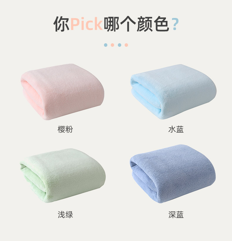 纳米碳纤纱珊瑚绒面料,3秒快速吸水、柔软亲肤,舒适透气,吸水性强,不掉毛不掉色,经久耐用,洗后不发硬,多色可选!