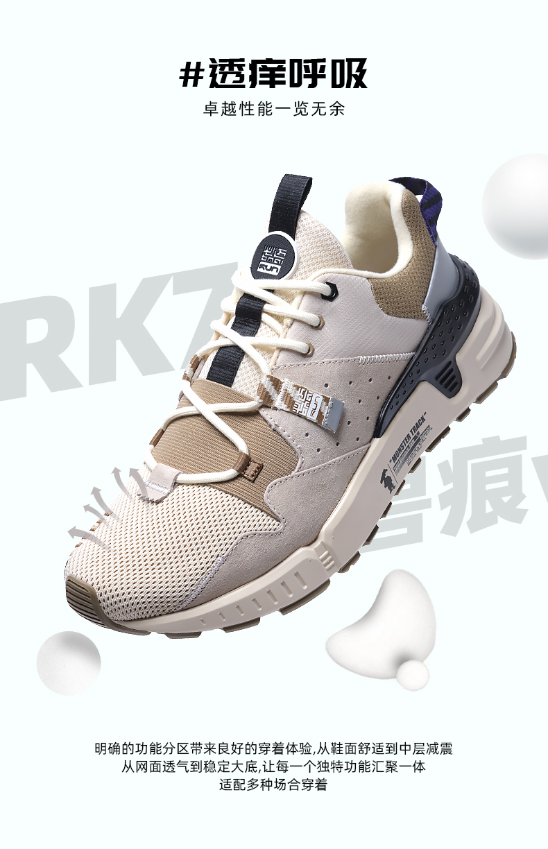 “迈Park7 兽痕v1” 鞋面是用牛反毛皮搭载3D透气网布制成,包裹舒适、透气性强,在保持舒适包裹感的同时,做出了更富有层次的结构设计,复古气息更浓,搭配潮流撞色设计,更适合年轻人的审美。