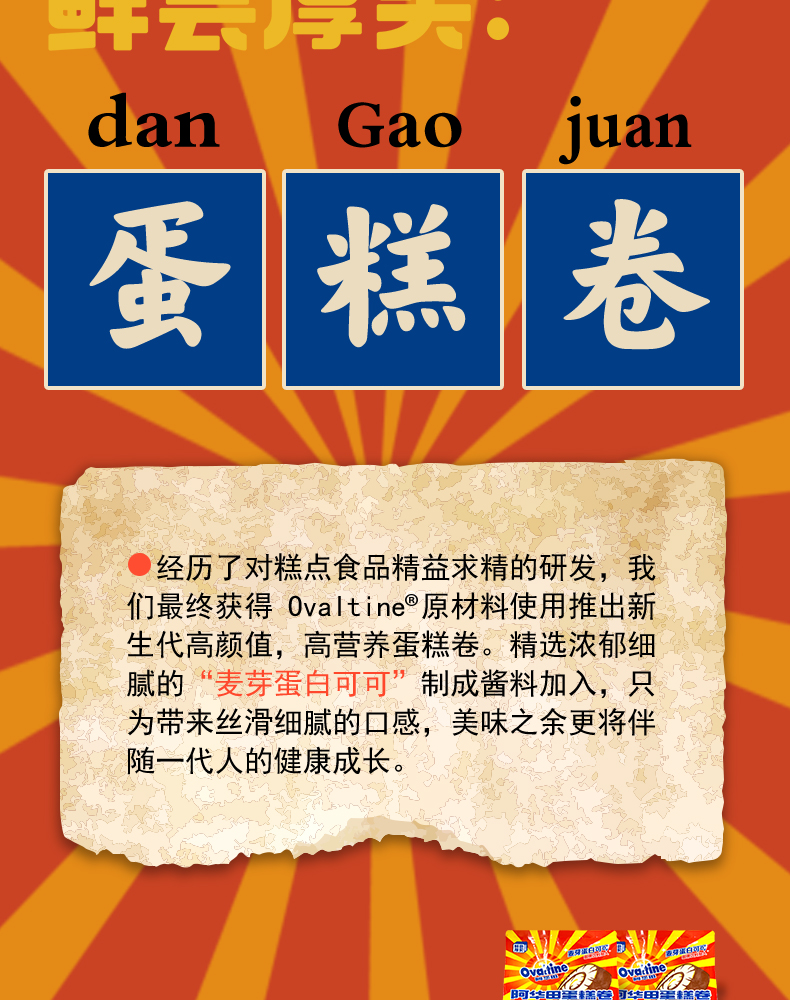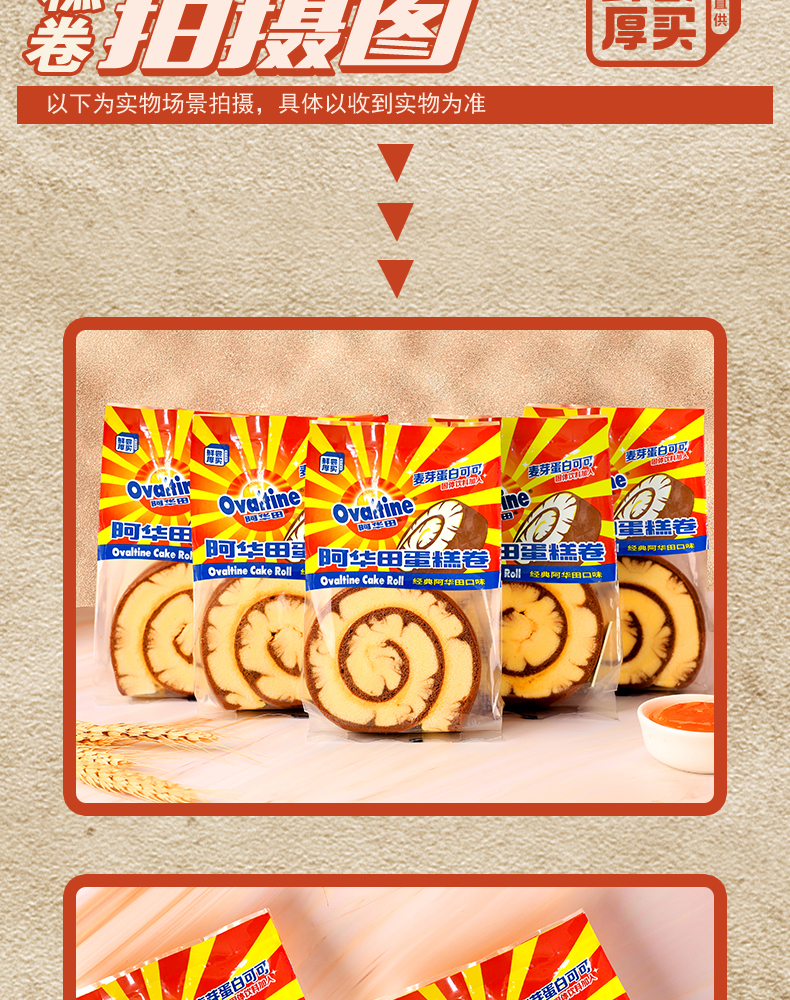 阿华田新品的蛋糕卷,精选优质小麦粉和新鲜土鸡蛋,搭配香醇乳粉和经典麦芽蛋白阿华田可可粉,新鲜制作,具有丝滑细腻的口感,单个便携独立包装,食用方便,很不错的小零食。