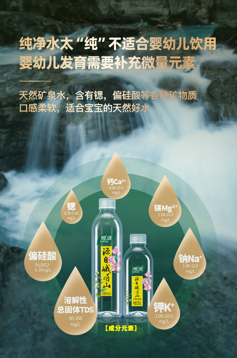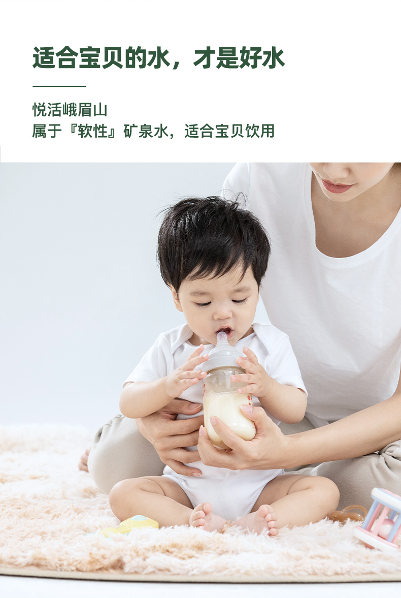 这款悦活 天然弱碱性矿泉水,中粮旗下出品,属于软性矿泉水,源自峨眉山地下深层,层层过滤,含有锶、偏硅酸等各种矿物质,低钠淡矿化度,口感柔软。