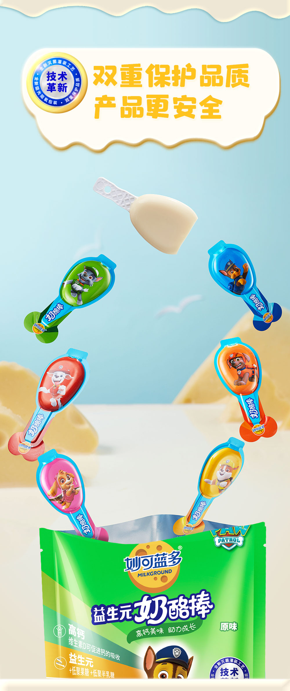 这款奶酪棒获得了汪汪队立大功的正版授权,包装可爱又童趣,选用优质奶源制作,高钙配方,专为儿童设计研发,口味香醇浓郁,采用先进的阻氧技术,锁住浓郁奶香,提升柔和口感,独立小包装,1次1根,食用方便。