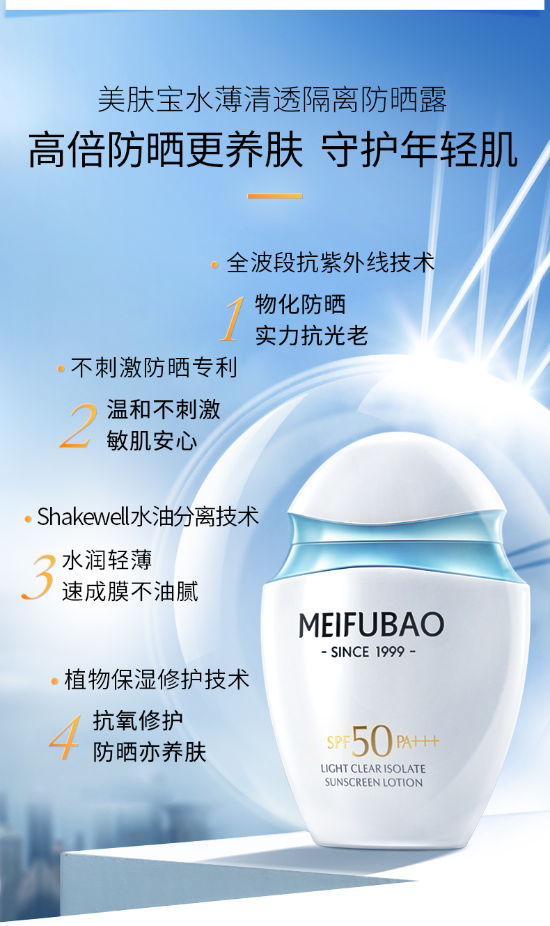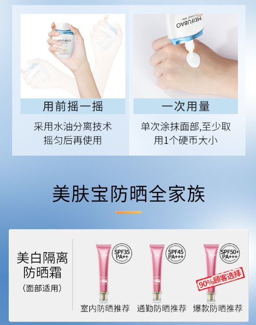 "小胖墩"美白防晒隔离三效合一,高效防晒SPF50、PA+++,Shakewell水油分离技术,水润轻薄不油腻、成膜快不泛白、持妆不卡粉、防水耐汗不融妆,植物配方,温和不刺激,敏感肌也适用。