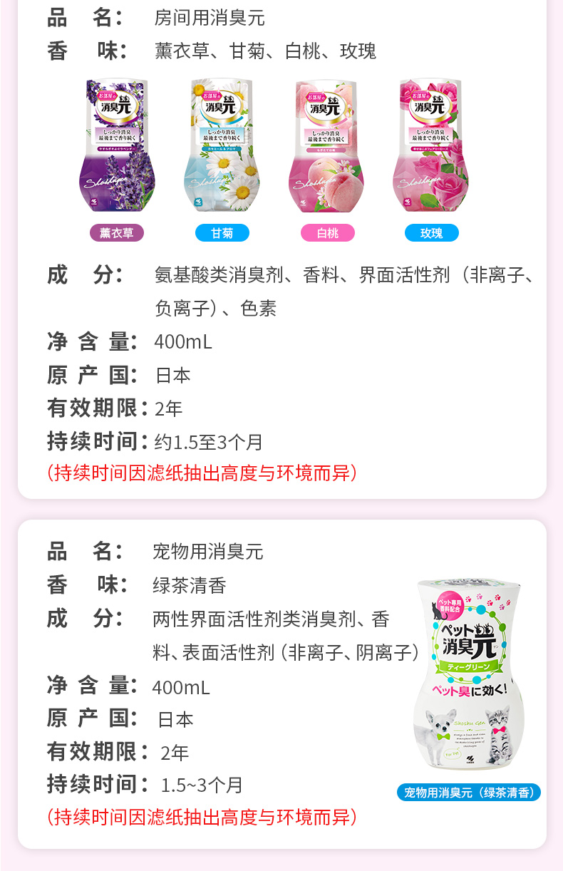 这款小林制药 消臭元 空气清新剂,呈液态形式。日本原产,香味可持续1.5~3个月。