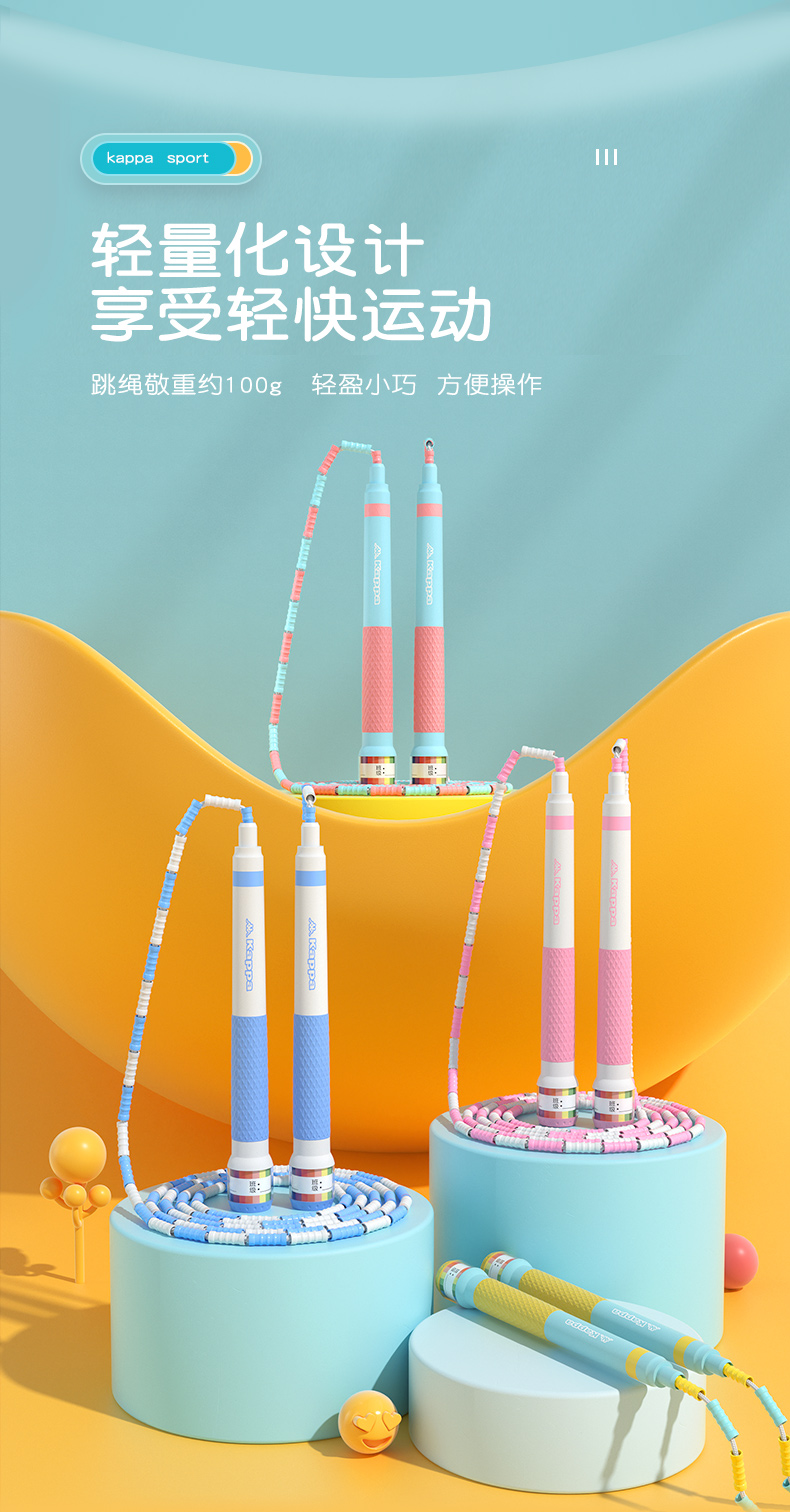 天猫kappa运动器械旗舰店19.9元,可领7元优惠券,实付12.9元到手,4款可选。这款kappa 儿童初学可调节竹节跳绳 ,轻量化设计,跳绳净重约100g,轻盈小巧,方便操作;优选PVC材质,安全环保,无毒无异味,耐摔打,噪音小有弹性;结实耐用绳芯,不易断裂,长度自由调节;手柄长度:17CM,绳体长度2600mm。