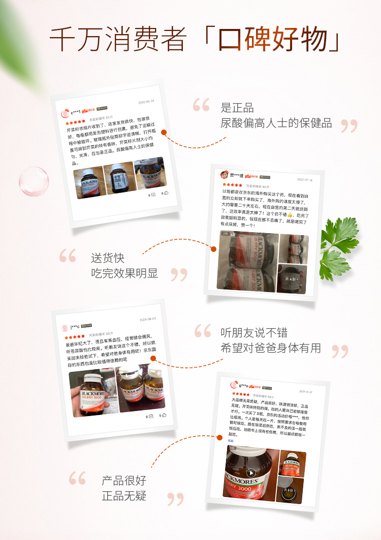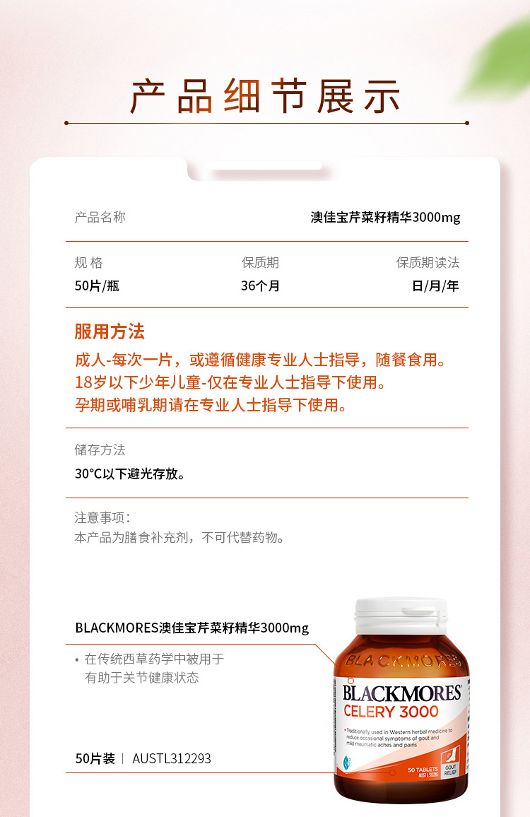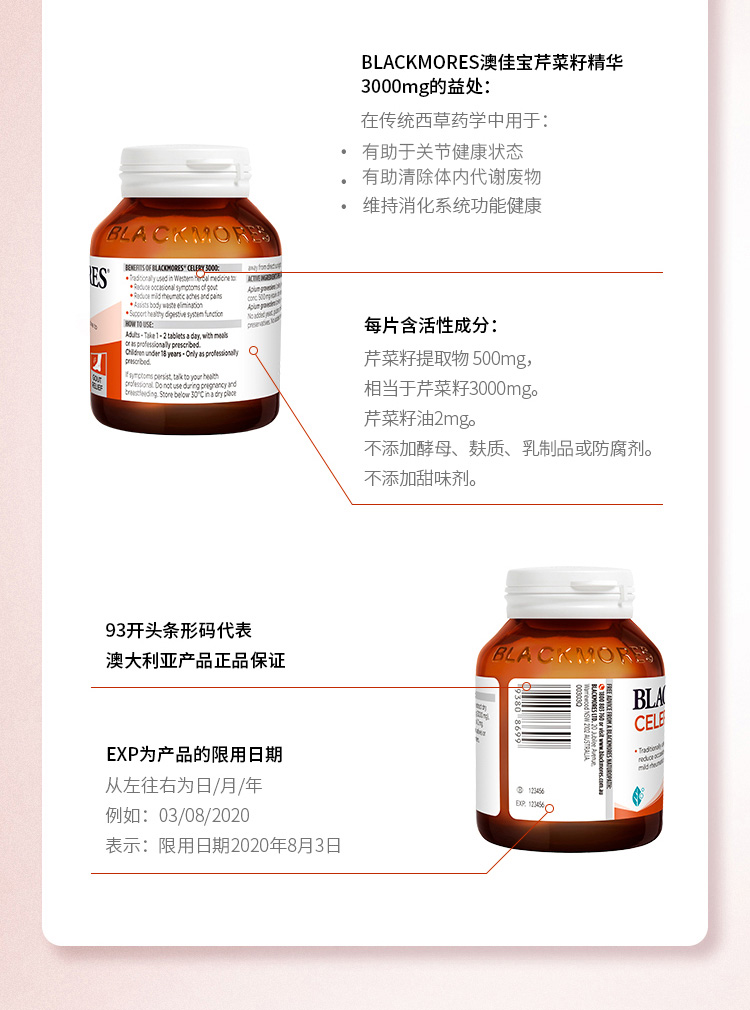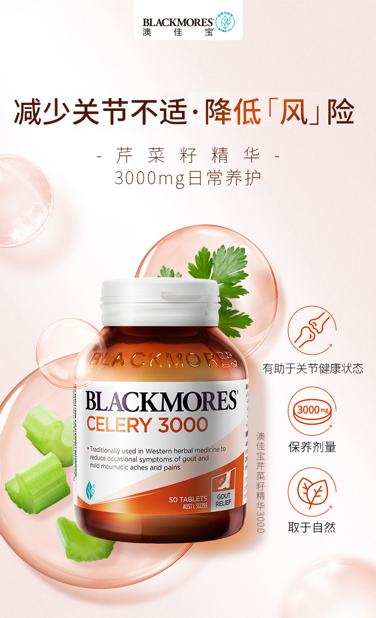 这款澳佳宝芹菜籽精华片,澳洲原产,主要是针对尿酸过高的人群,有功效促进代谢、利尿解毒、缓解痛风的功效。选取澳大利亚纯净土地种植的天然无污染西芹为主原料,高浓缩植物配方,无任何人工添加,天然安全。