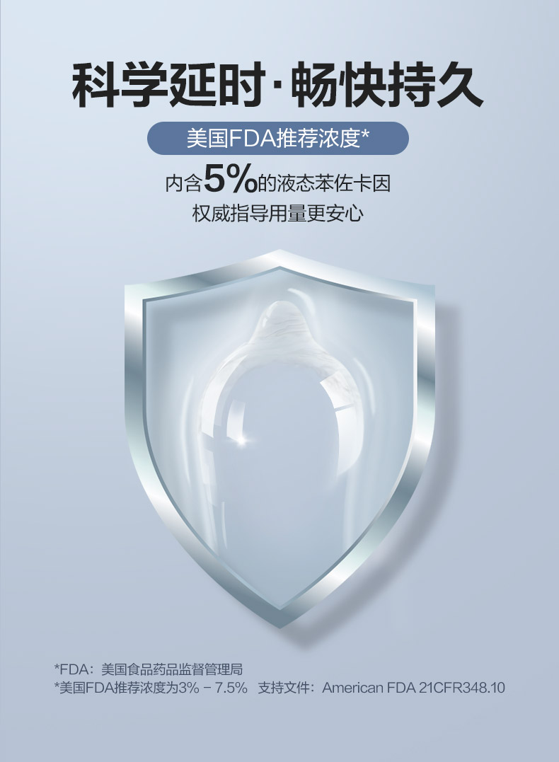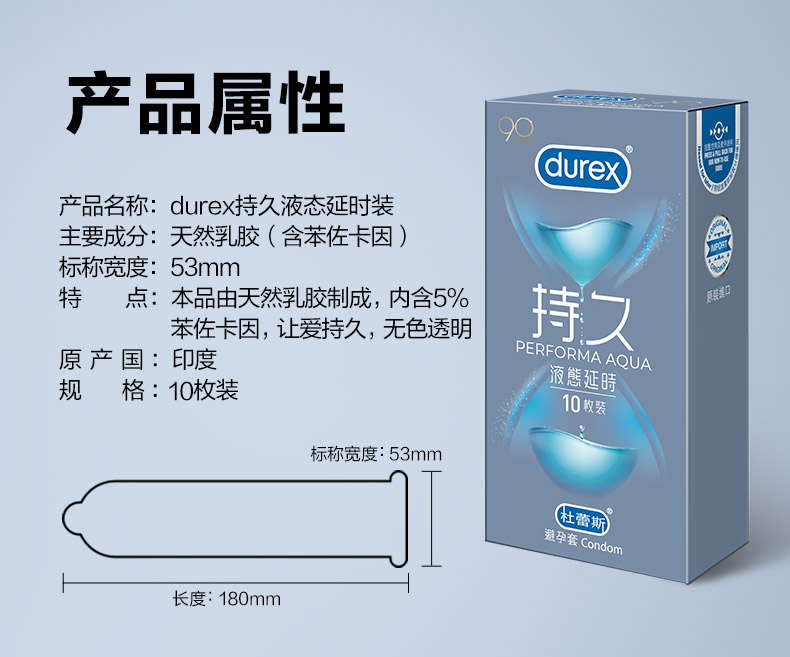 这款杜蕾斯 持久超薄避孕套,采用天然乳胶制成,产品如丝般轻柔,超薄超滑更敏感,含6-8mg的苯佐卡因成分,有很好的延时效果,而且不麻木见效快,安心征伐不停歇。苯佐卡因是医学上常用的脱敏成分,能降低男性的敏感程度。