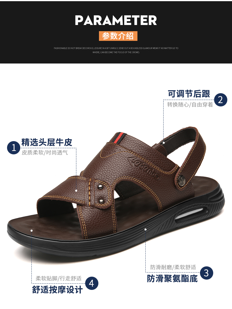 这款Edenbo 爱登堡 2021年夏款男式真皮凉鞋两用沙滩鞋 ,精选头层牛皮鞋面,柔软细腻,柔软透气,且有光泽;乳胶夹层鞋床,贴合省力,拒水打滑,行走省力不打滑;手工缝制,加厚按摩底,省心两穿设计,凉拖随心切换;弹力气垫鞋底,柔软舒适软弹。
