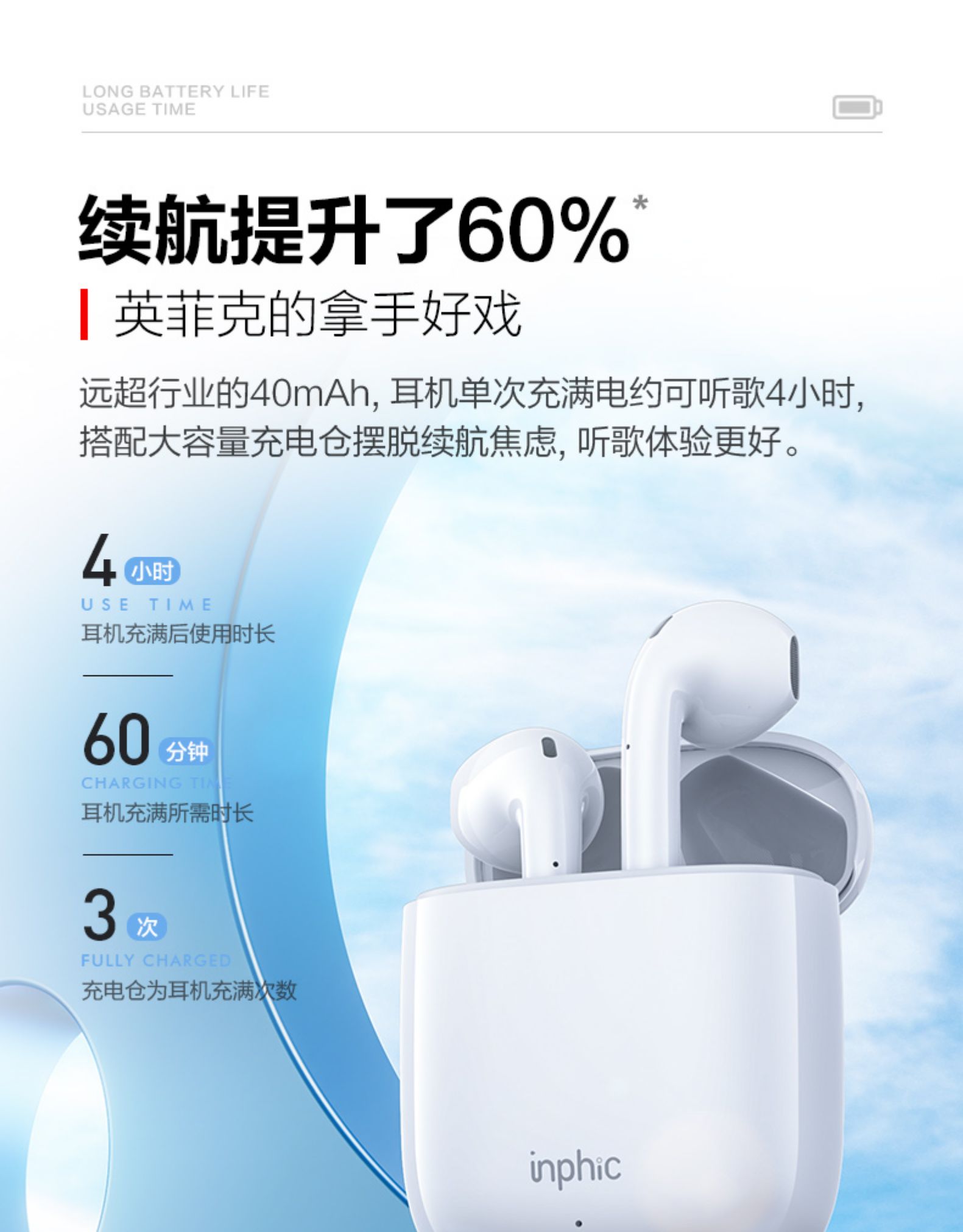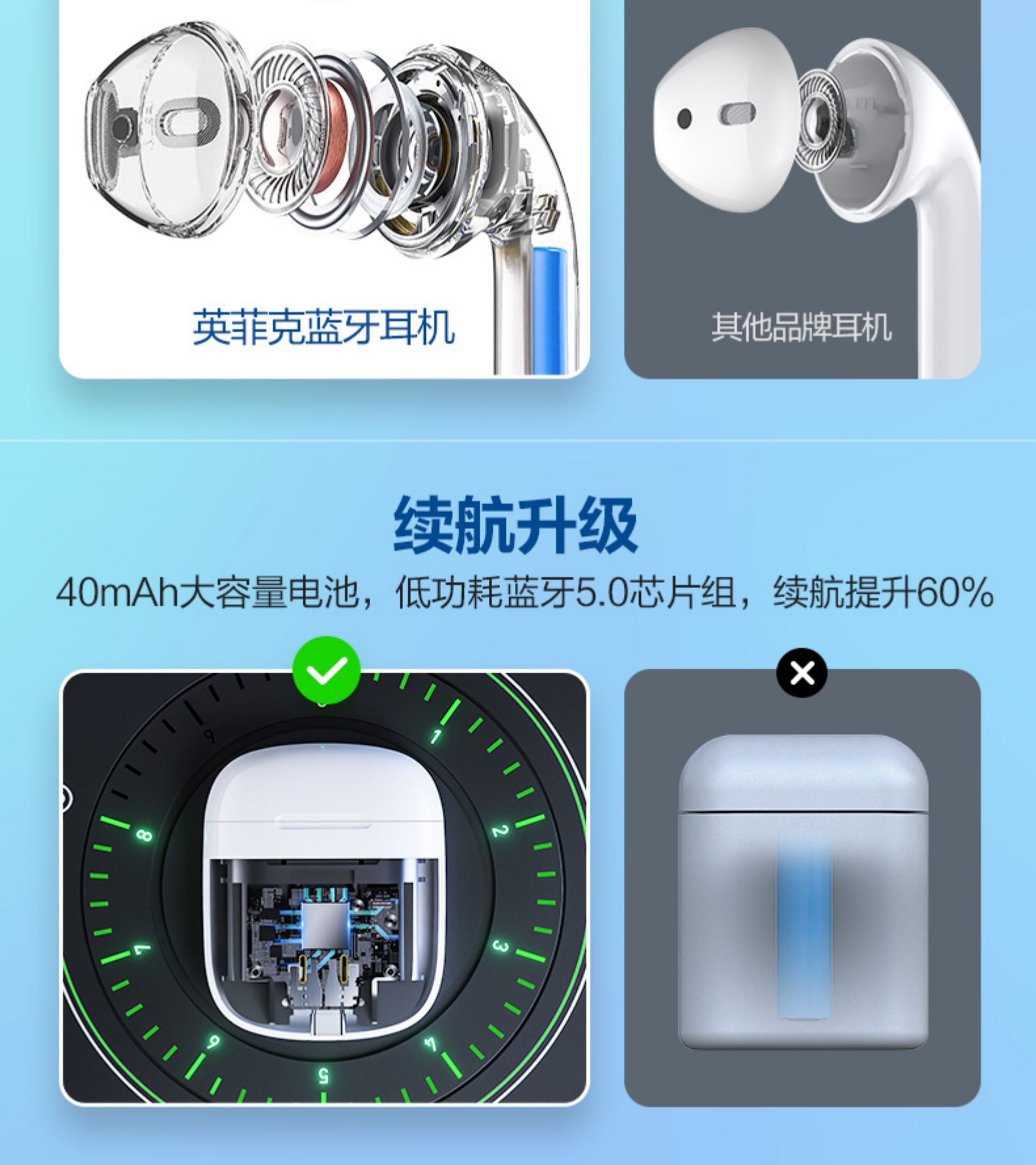 英菲克2021新款,匠心之作,高颜值5.0真无线蓝牙耳机,双耳续航约4小时,耳机充电60分钟!兼容IOS、安卓,跑步,狂甩不掉~指纹触控操作,弹窗配对,自动连接,入耳即听领券链接点此