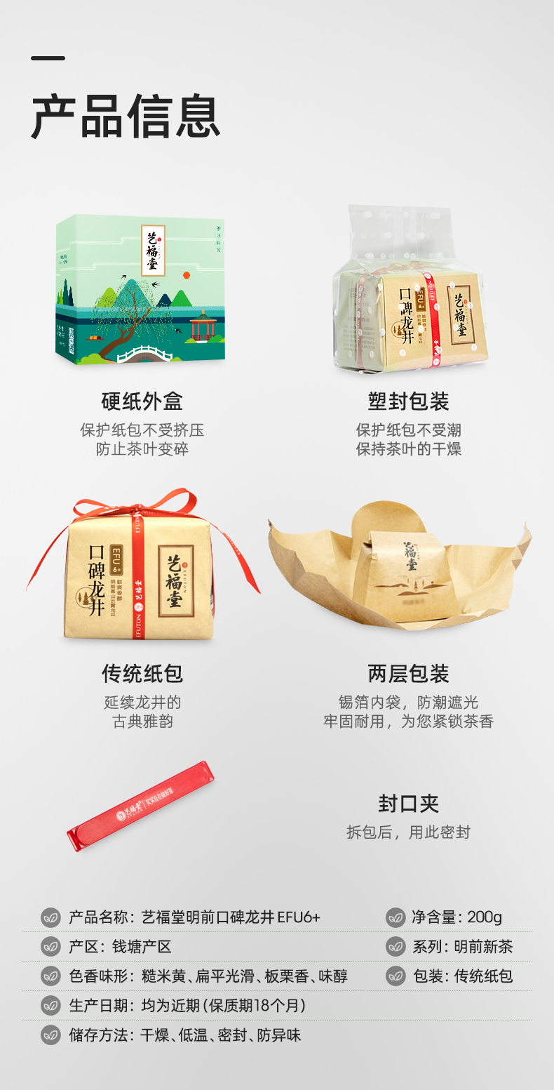 这款艺福堂西湖龙井2022年的新茶,是口碑EFU6+龙井茶,明前特级品质。在清明节前采制的茶叶,受虫害侵扰少,芽叶细嫩,色翠香幽,味醇形美,是茶中佳品。同时,由于清明前气温普遍较低发芽数量有限,生长速度较慢,能达到采摘标准的产量很少,所以又有“明前茶,贵如金”之说。
