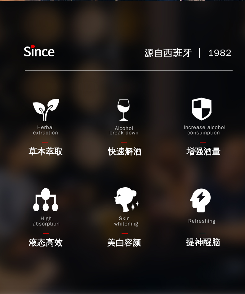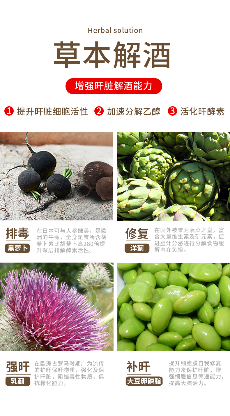 西甲足球联赛指定合作品牌,荣获2018香港乐活天然保健品大奖,每10mL含浓缩草本精华3914mg,可缓解加班熬夜的症状,解酒护肝养肝,酒场护驾,熬夜必备。液态草本配方,快速解酒,平时经常熬夜或应酬的童鞋可常备。