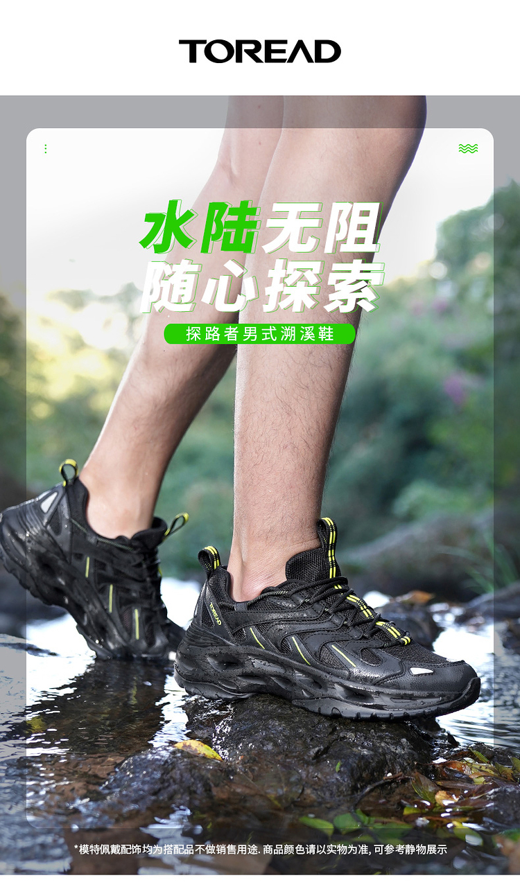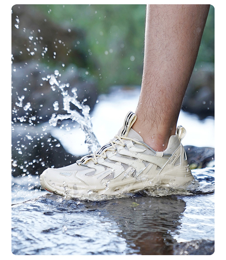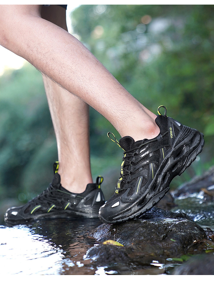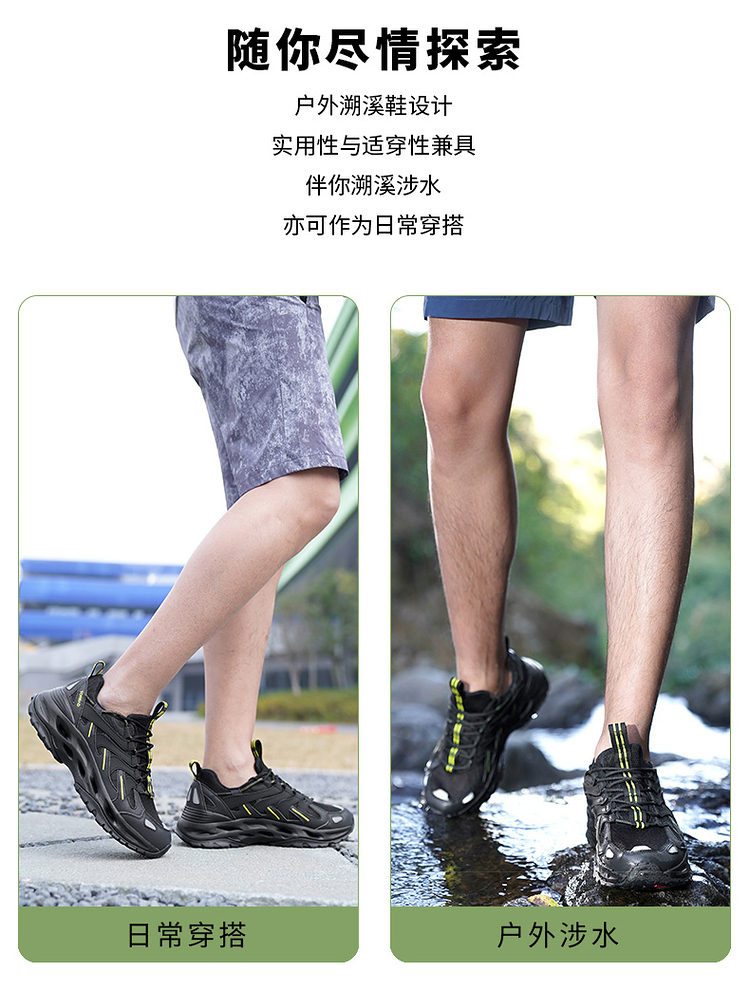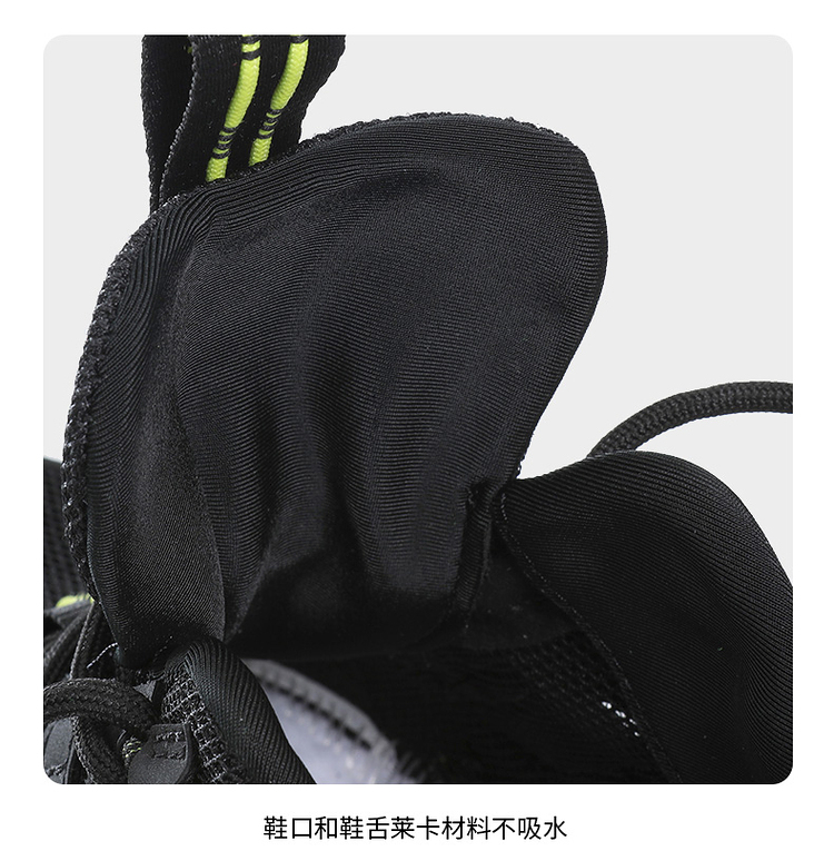 鞋带锁止扣鞋带设计,轻拉即可快速系紧鞋带与传统鞋带相比,入水后不易被水流冲散松脱,涉水更安全。