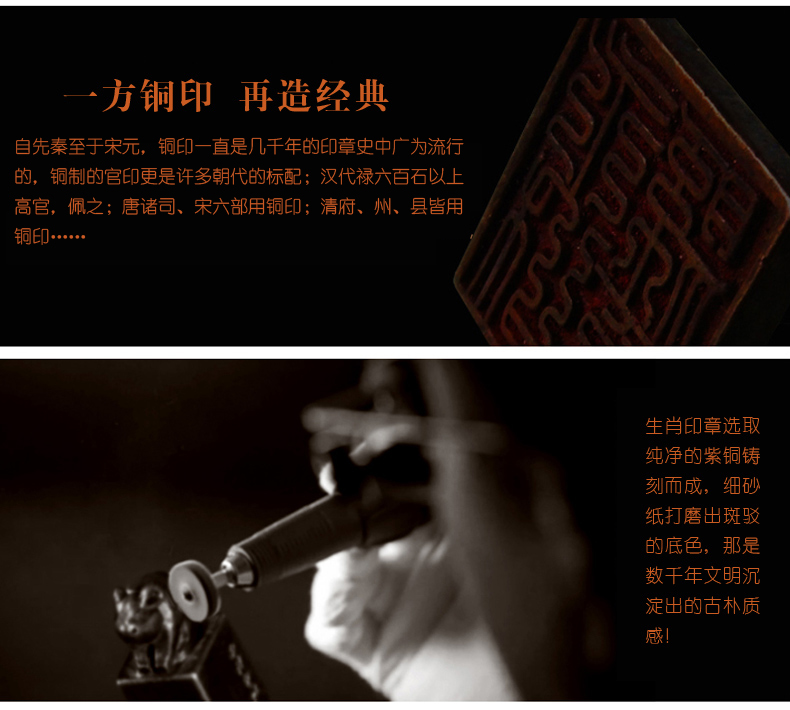 天猫西泠旗舰店258元,可领20元优惠券,实付238元到手;百年传承西泠印社出品,实心紫铜生肖印章 ,采用紫铜实心铸造,细砂纸打磨出斑驳底色,古朴而有质感,免费定制,自用送人都不错。