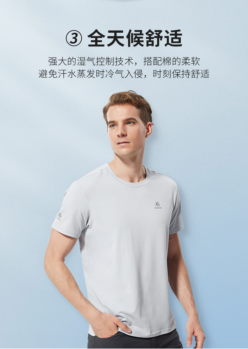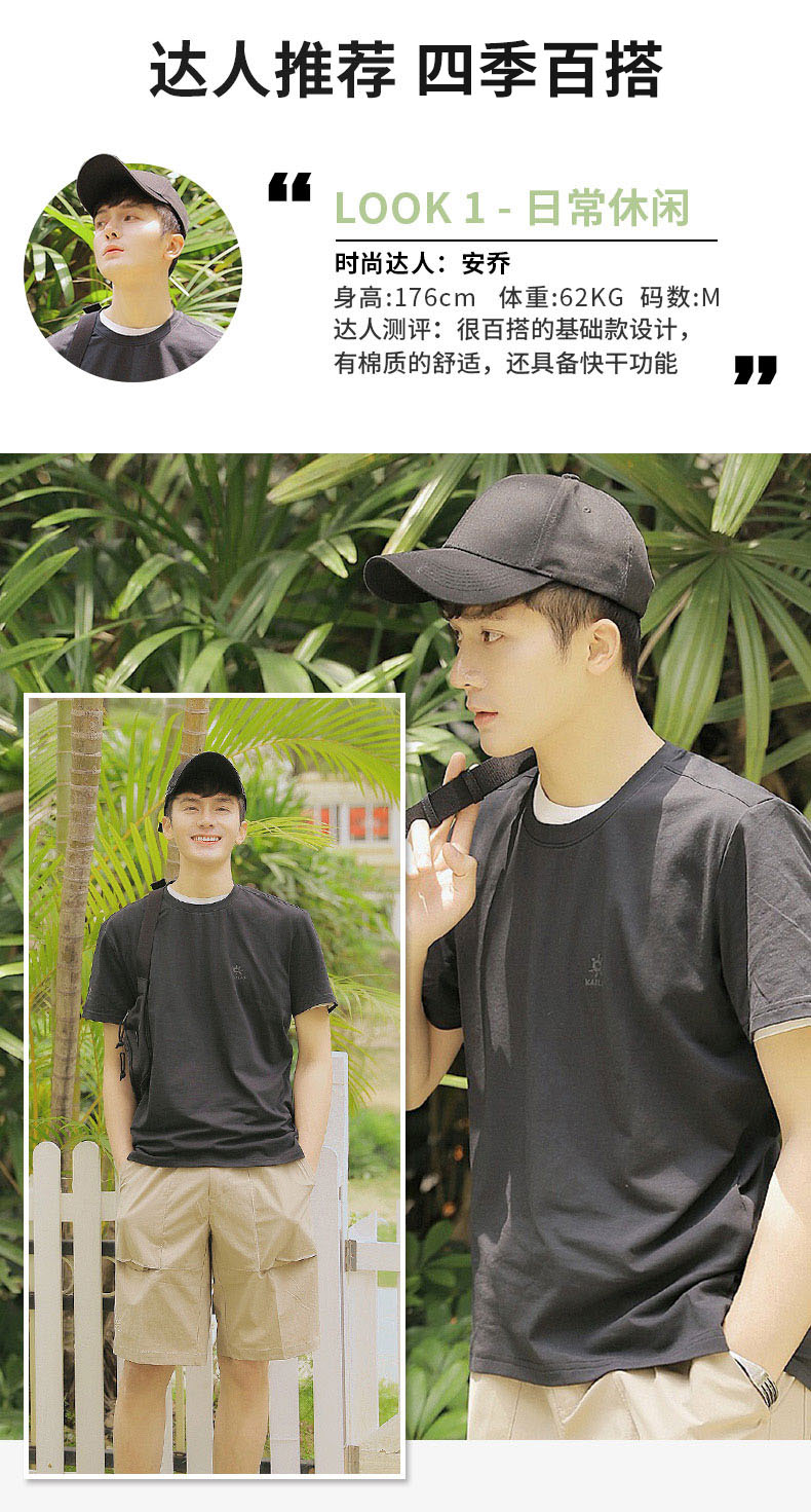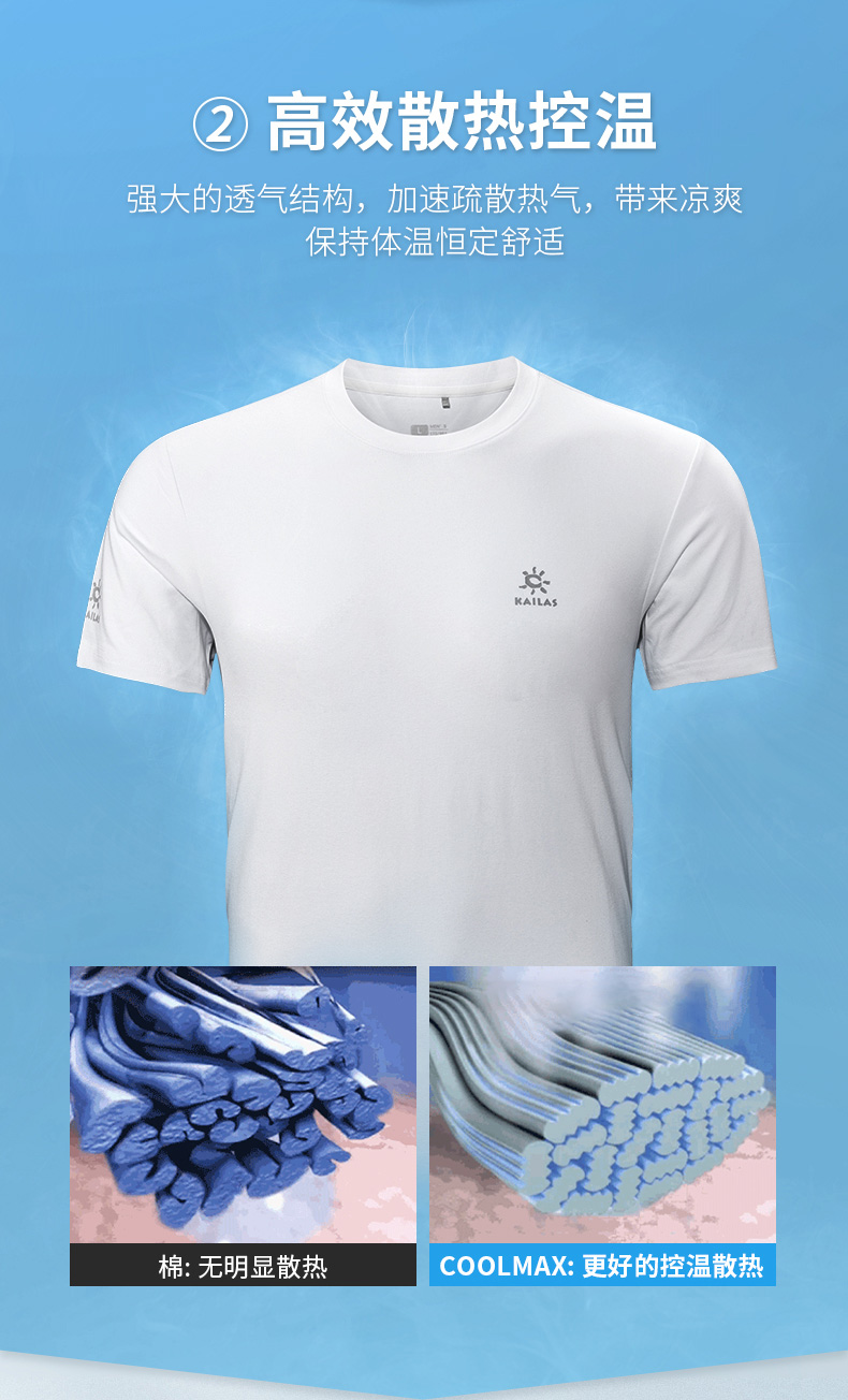 这款T恤采用CoolMax科技速干黑客气,全面升级棉T面料,在保持棉T柔软舒适性同时,增强了透气性,可加速热气疏散,快速抽离体表汗液,并扩散至面料表层,加快蒸发,夏季穿着清爽不粘腻。