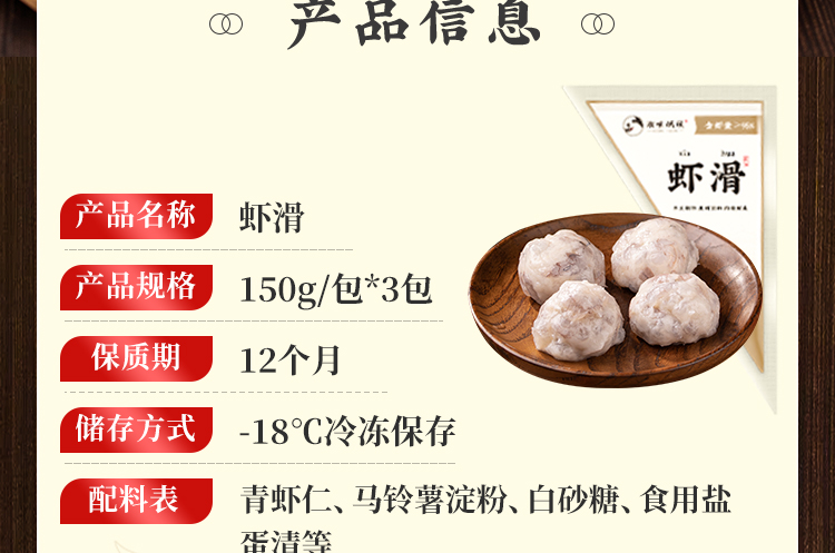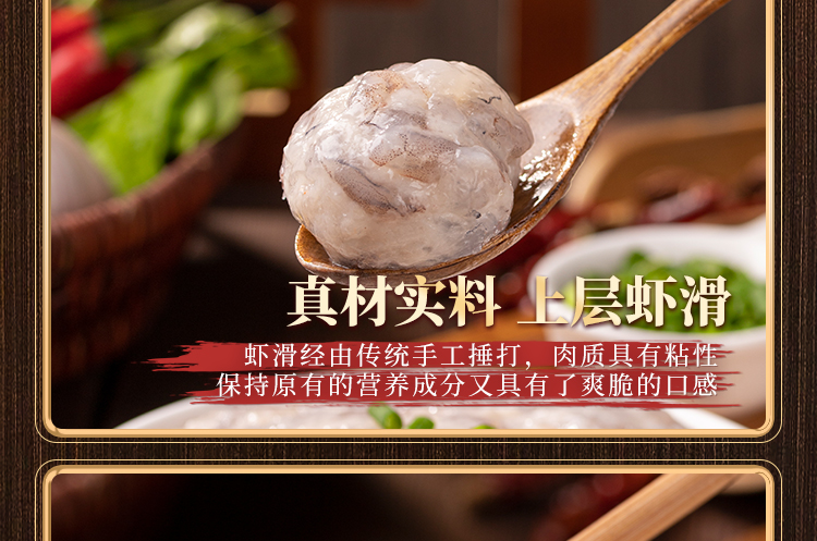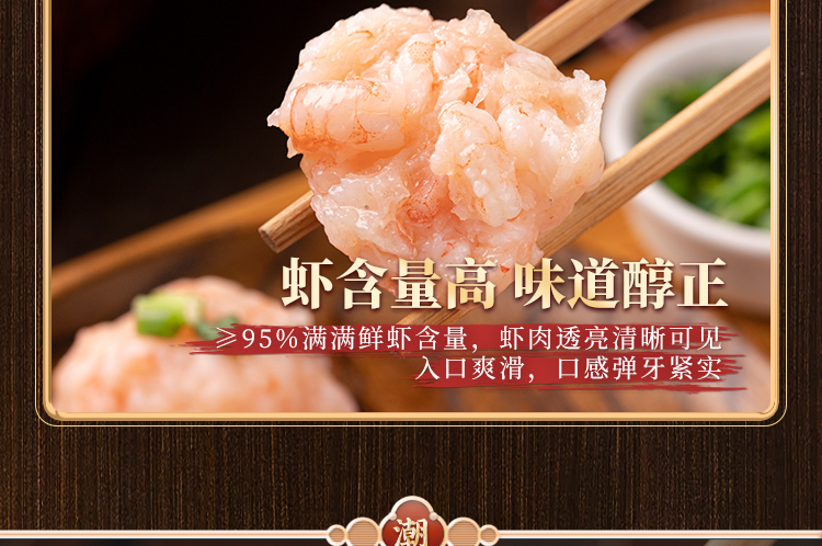 这款潮味码头 手打纯虾仁虾滑,95%虾含量,选用纯净海域出产的当日新鲜青虾 ,1盒虾滑≈35~40只虾,无添加放心配方,定义真正健康好虾滑;3:1:1黄金配比,360度揉打黑科技,口感层次丰富,煎炒烹炸涮煮,怎么做都好吃。