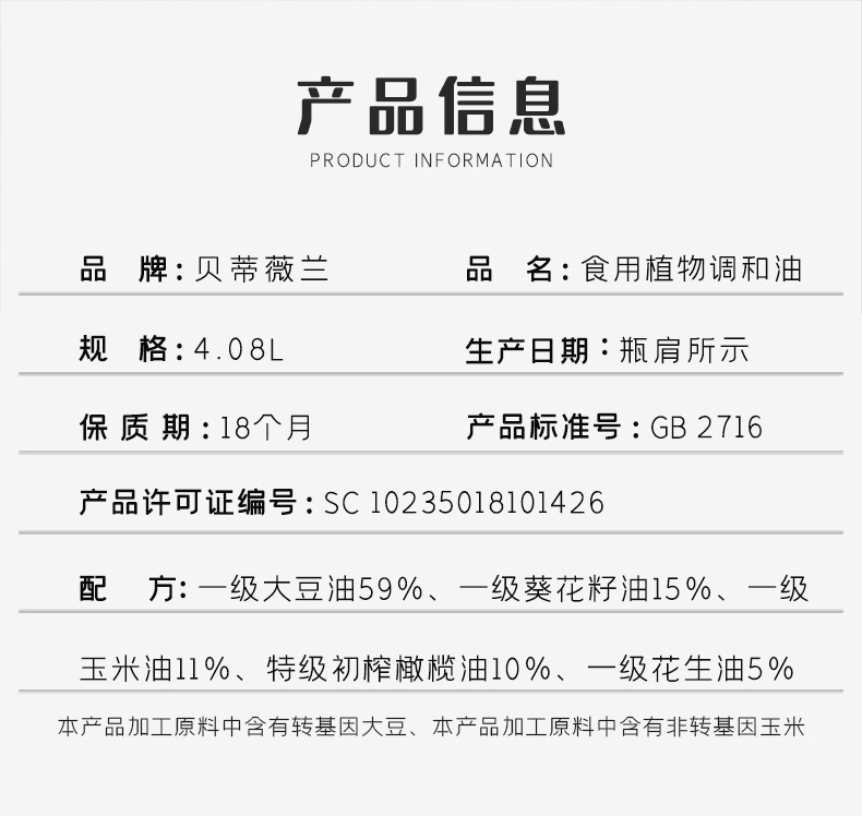 天猫康倍多旗舰店89.9元,可领20元优惠券,实付69.9元到手,配方:一级大豆油59%、一级葵花籽油15%、一级玉米油11%、特级初榨橄榄油10%、一级花生油5%,科学调制,近期鲜油。油烟少,口感清淡不油腻,营养均衡,满足家庭所需,用诚意做油,让你每一滴油都吃的放心,每一餐都放心享用。