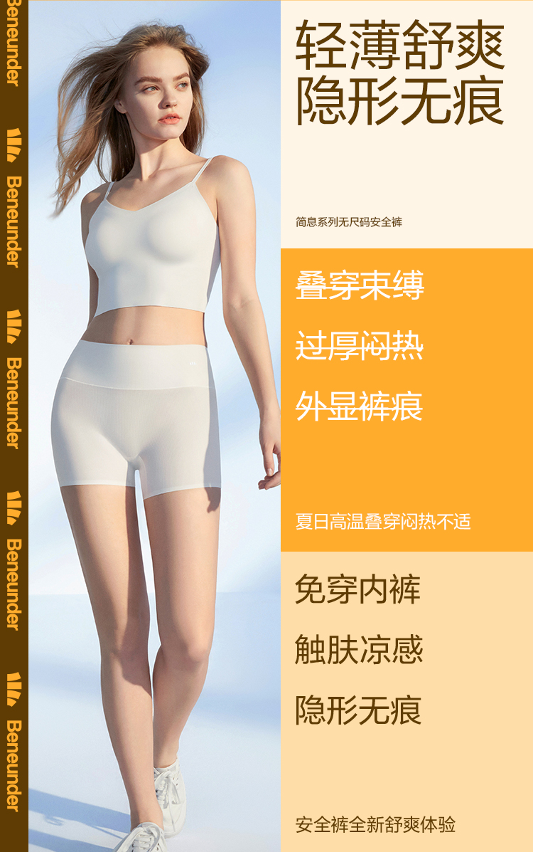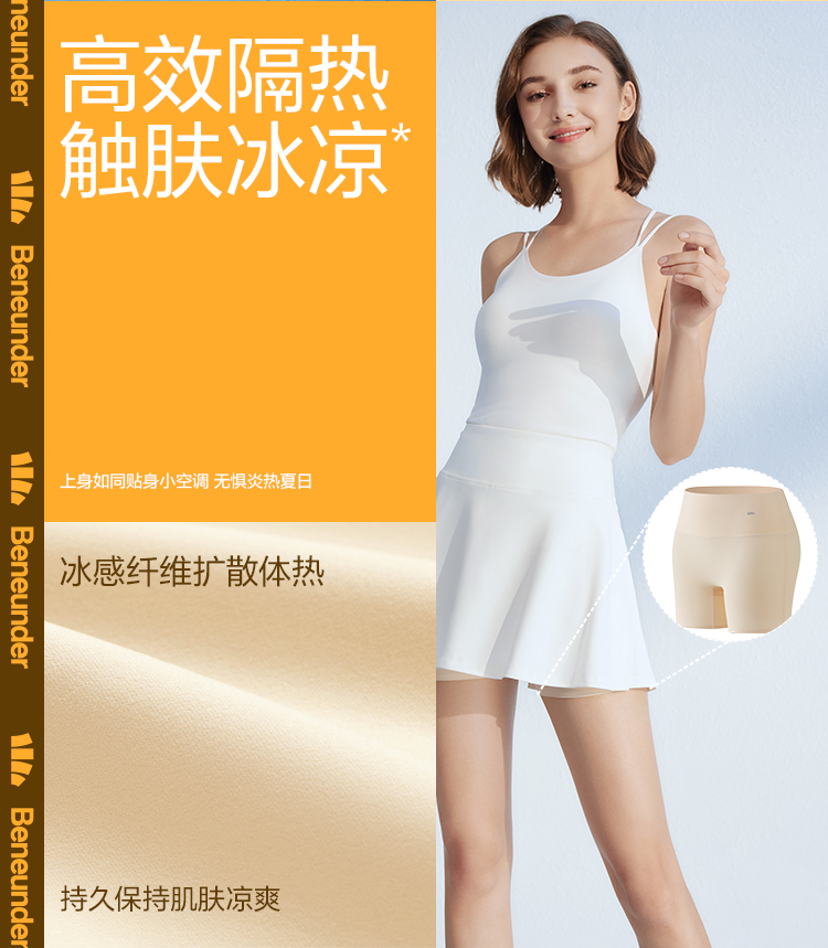 这款蕉下 零束系列 安全裤,采用AirLoop科技凉感纤维,BUTEC工艺处理,注入高稳定性凉感粒子,形成能迅速将温度扩散的强力导热层,凉感系数高于标准值约1.47倍,触肤凉感。冰凉纤维扩散体热,持久保持肌肤凉爽,微孔透气,干爽不粘不闷湿,超薄裸感面料,纤薄隐形防走光,无痕四面弹力,舒适贴身。9cm双层高腰,威压收腹,底裆100%纯棉面料,细腻亲肤柔软,特殊抑菌工艺处理,3A级抑菌,减少异味,防夹臀设计,贴合不掉裆,无缝防卷边。