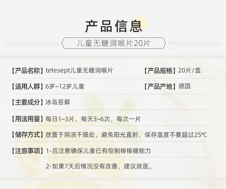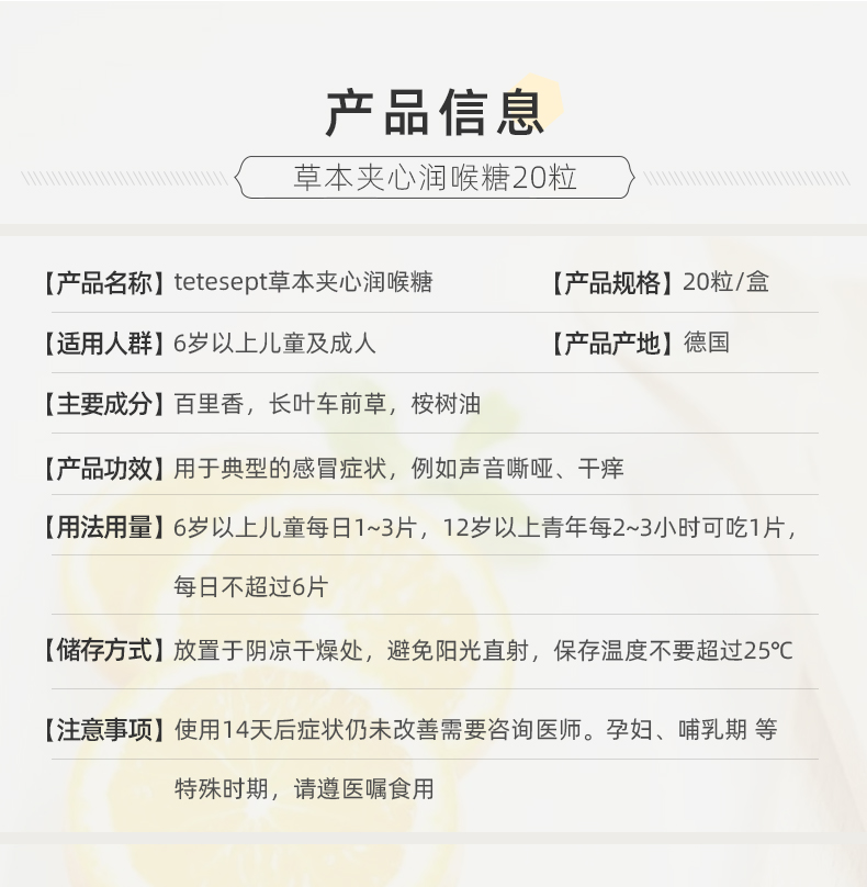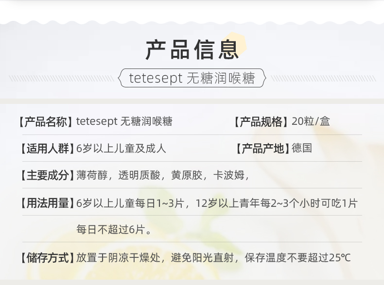 天猫tetesept海外旗舰店59元,可领10元优惠券,实付49元到手,柠檬、樱桃2种口味可选,科学无糖配方,清热去火,利咽解毒,促进受损粘膜修复、改善喉咙充血,润嗓润肺缓咳,大人小孩(6岁以上)都能用~