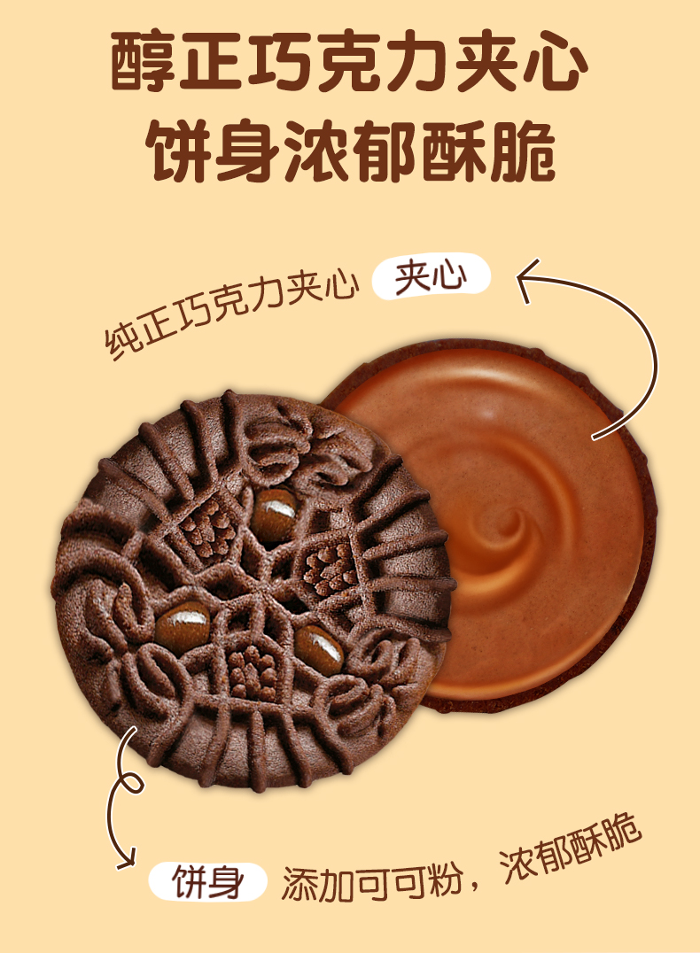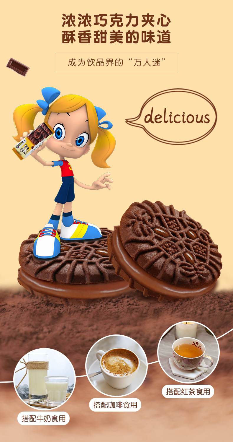 这款Julie's 茱蒂丝 100%纯可可巧克力夹心饼干,100%纯可可,不含代可可,0反式脂肪酸,浓郁香脆,搭配牛奶一起食用更满足。