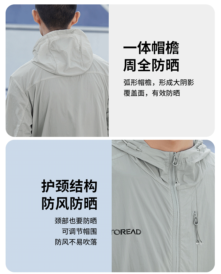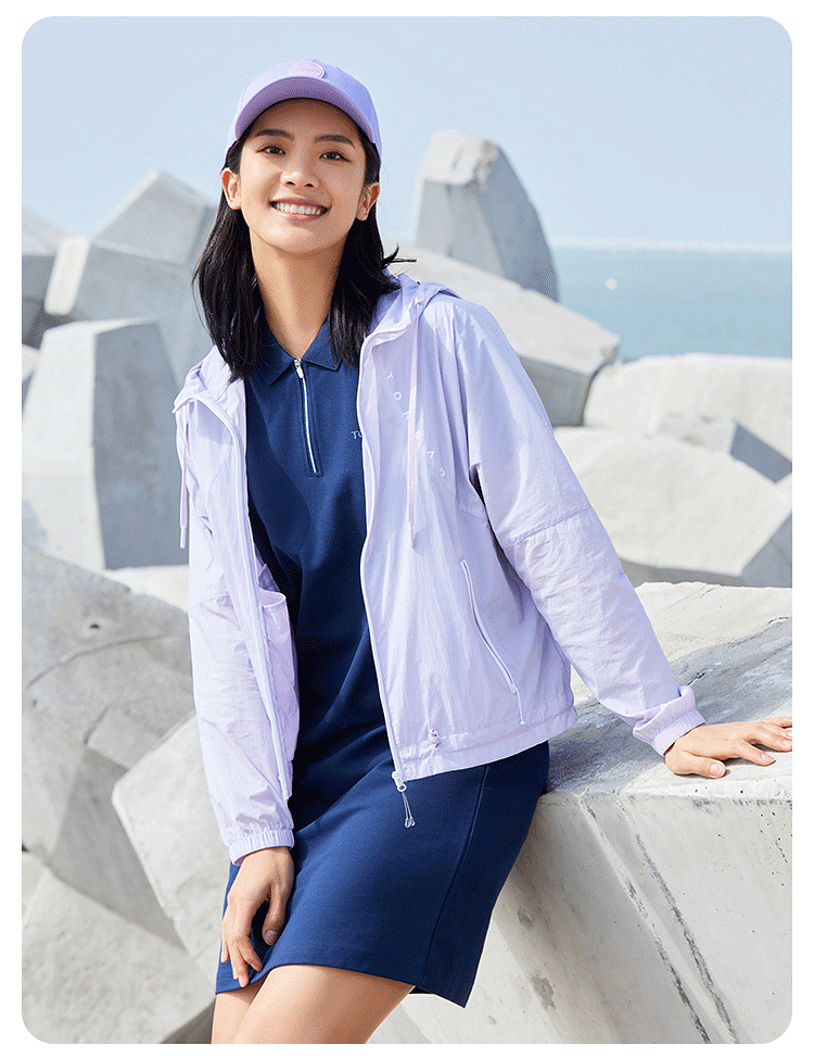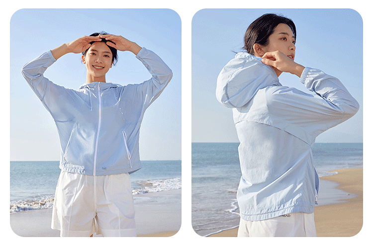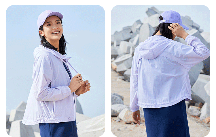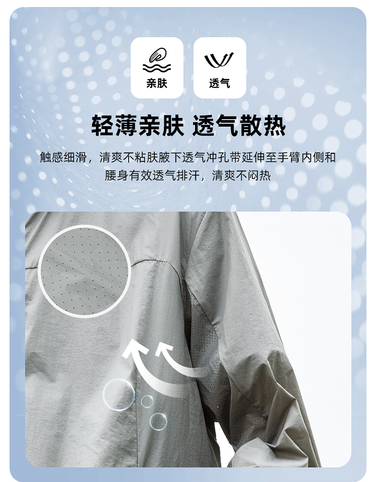 款式和细节上,一体连帽设计,有调节扣便于调节松紧,帽檐、袖口和下摆都有松紧弹力包边。腋下透气冲孔带延伸至手臂内侧和腰身有效透气排汗,清爽不闷热,即使运动中穿着也不会闷热。