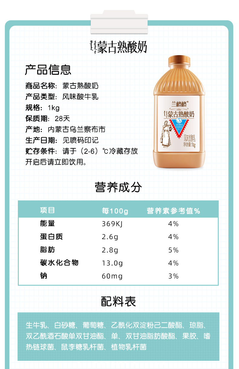 这款包含草原酪酸奶、炭烧熟酸奶各一瓶,2斤/瓶量大实惠,可直接吃,也可制作冰激淋,水果布丁等,吃法百搭。酪酸奶传承传统蒙古酸奶制作技艺,以被列入盟市级非物质文化遗产名录,采用草原优质牛奶,独特配比菌种,口感独特,味道更香浓。