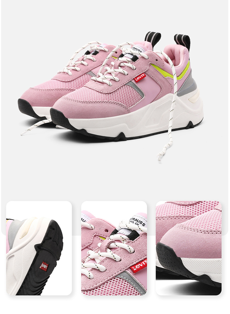 这款Levi’s 李维斯 真皮运动休闲板鞋,鞋面采用NAPPA牛皮面料,纹理清晰,具有张力,透气性好;学院风板鞋设计,时尚易搭,潮走街头,线条流畅,质感立体;白色橡胶底,柔软舒适,弹性充盈,更具有着地力,更有抓地力。