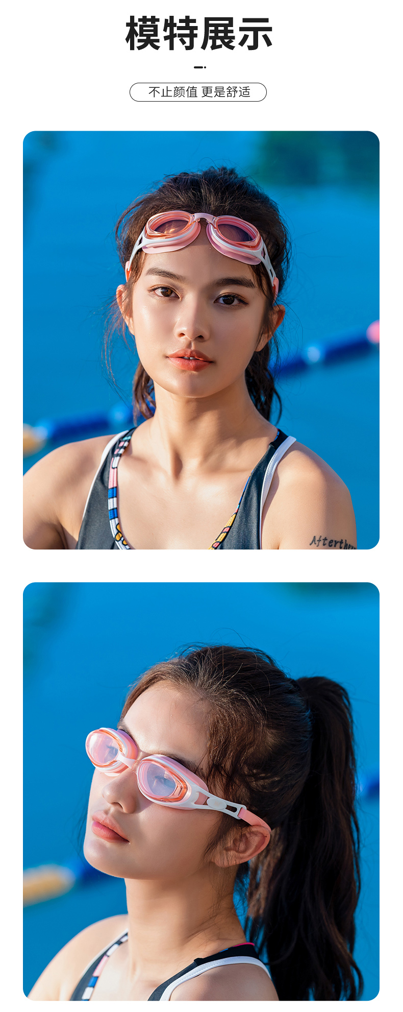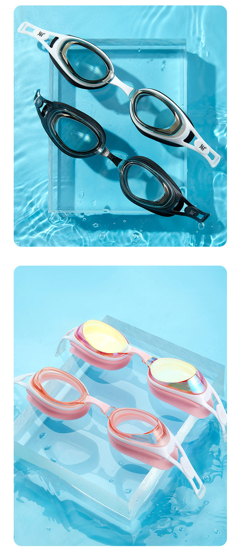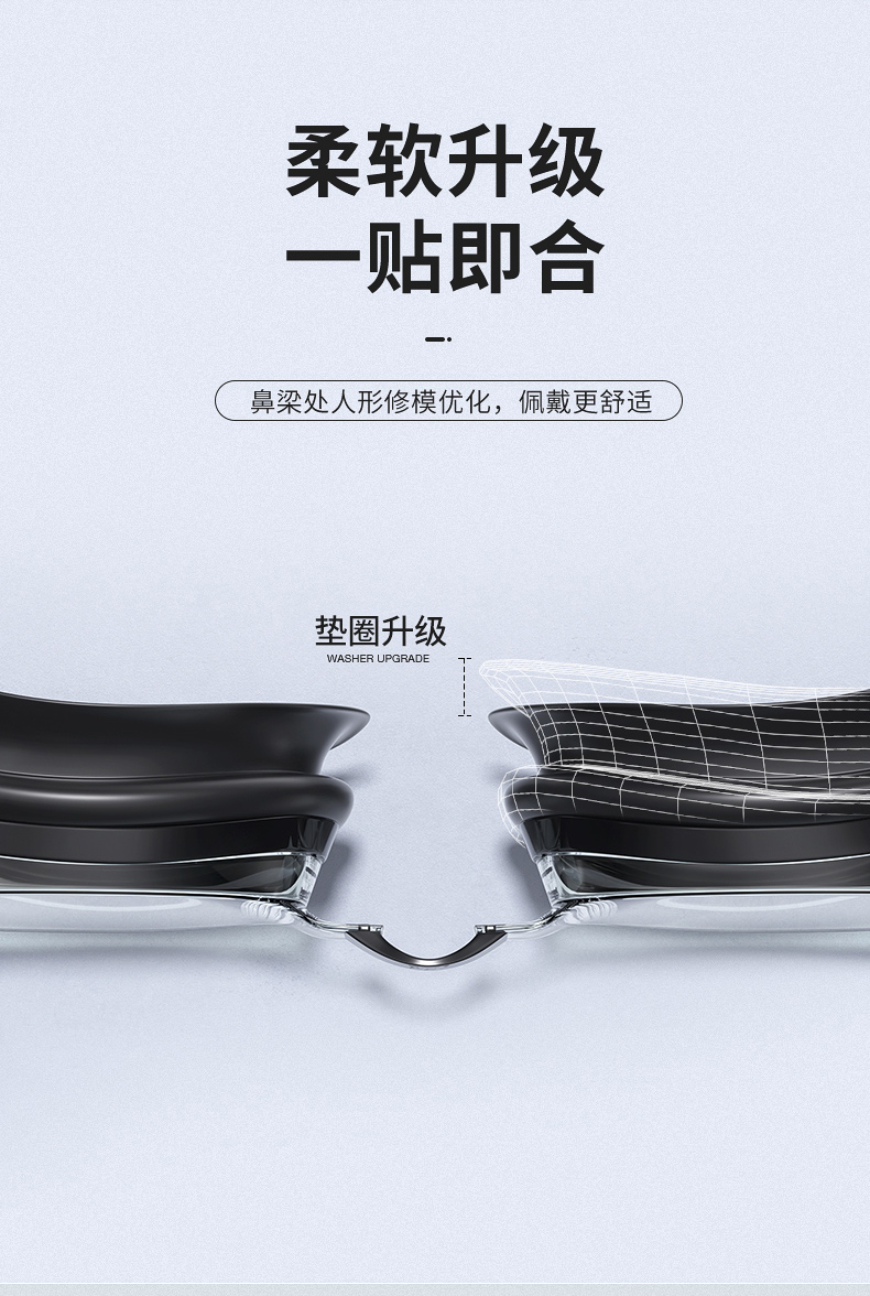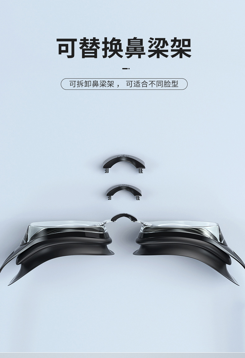 这款361度防水防雾高清泳镜,一体成型的高韧度软骨架,镜框不会断裂,镜体不易变形、伤肤;镜片是防紫外线+防水镜片+防雾层的组合,高清通透。旋转式可替换鼻桥,韧性强劲,弯曲不易变形。