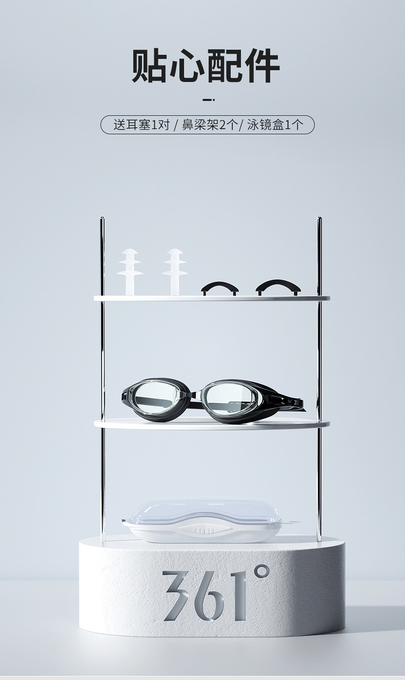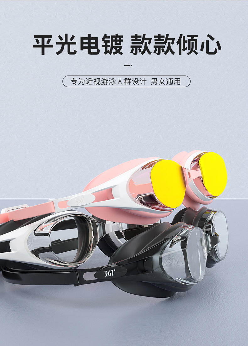天猫361度游泳旗舰店,平光镜款19.9元,可领7元优惠券,实付12.9元到手,还有带度数的可选,200~600度,高清防雾防水泳镜。