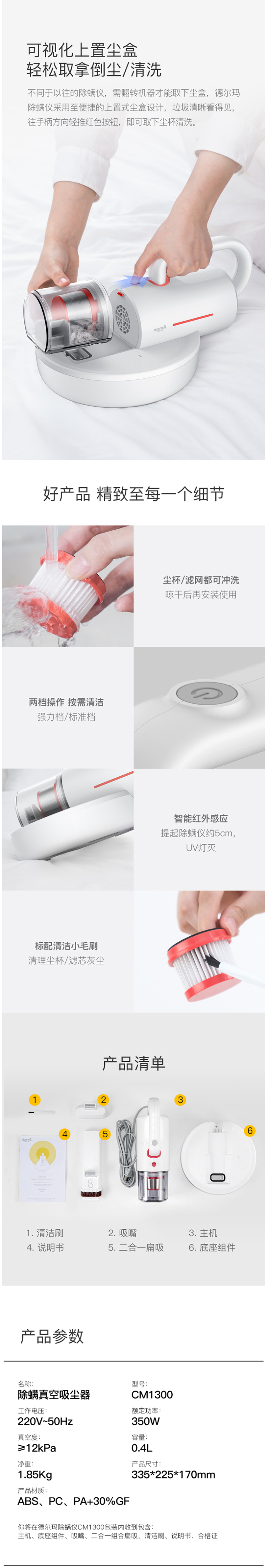天猫德尔玛旗舰店,第一款309元,可领134元优惠券,实付175元到手。可组装变形除螨仪/吸尘器 紫外线大吸力除螨。