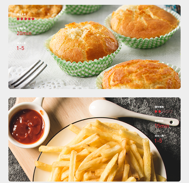 空气炸锅其原理和烤箱类似,通过高速热空气循环,利用食物自身的油脂炸熟食材,相对比传统的油炸更健康,口味也和烧烤的差不多,味道不错。相比烤箱的大体积,空气炸锅更省空间,适合三口之家日常使用,比较实用。