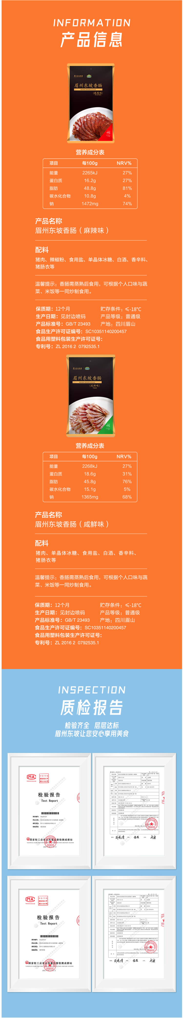 这款眉州东坡 香肠,精选好肉肉质鲜嫩,甄选猪身前胛肉和后腿肉,大块肉粒投料,保持肉质饱满鲜嫩。承袭古法,口感延古出新,完善川菜猪肉应用分割标准。地道川味色香诱人。全封闭风干车间,模拟四川腊月风速,湿度,温度。浓郁肉香加,不添加淀粉,无烟熏、不添加防腐剂、无香精色素,杂肉等肉质细腻口口难忘。