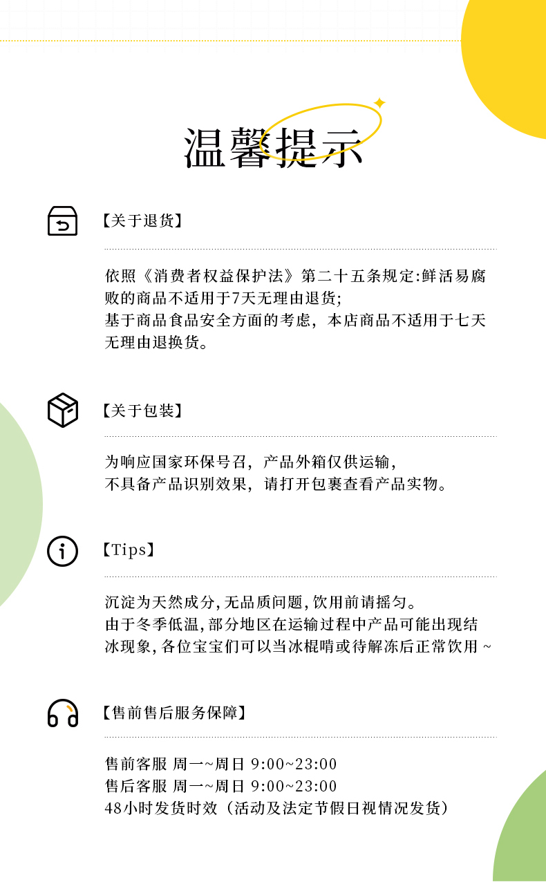 还采用国外引进的GL专利保鲜技术,持续锁鲜。使用环保纸罐,无金属残留。口感清甜不腻,含有很多果肉。果汁中富含天然维生素C、叶酸、膳食纤维及果胶。