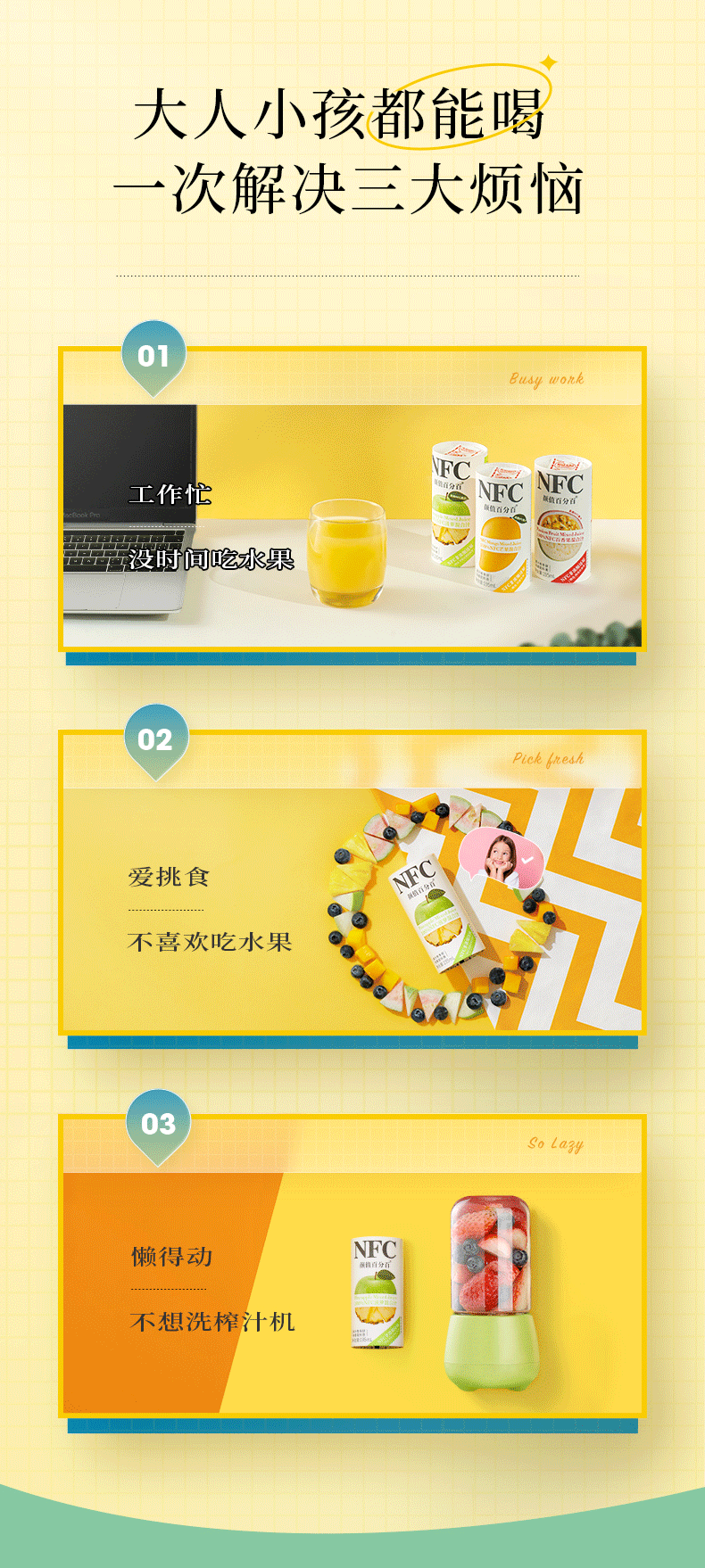 在欧美发达国家,60%以上的饮品货架上都是这种NFC果汁,基本如牛奶一样是家庭日常消费的必需品。