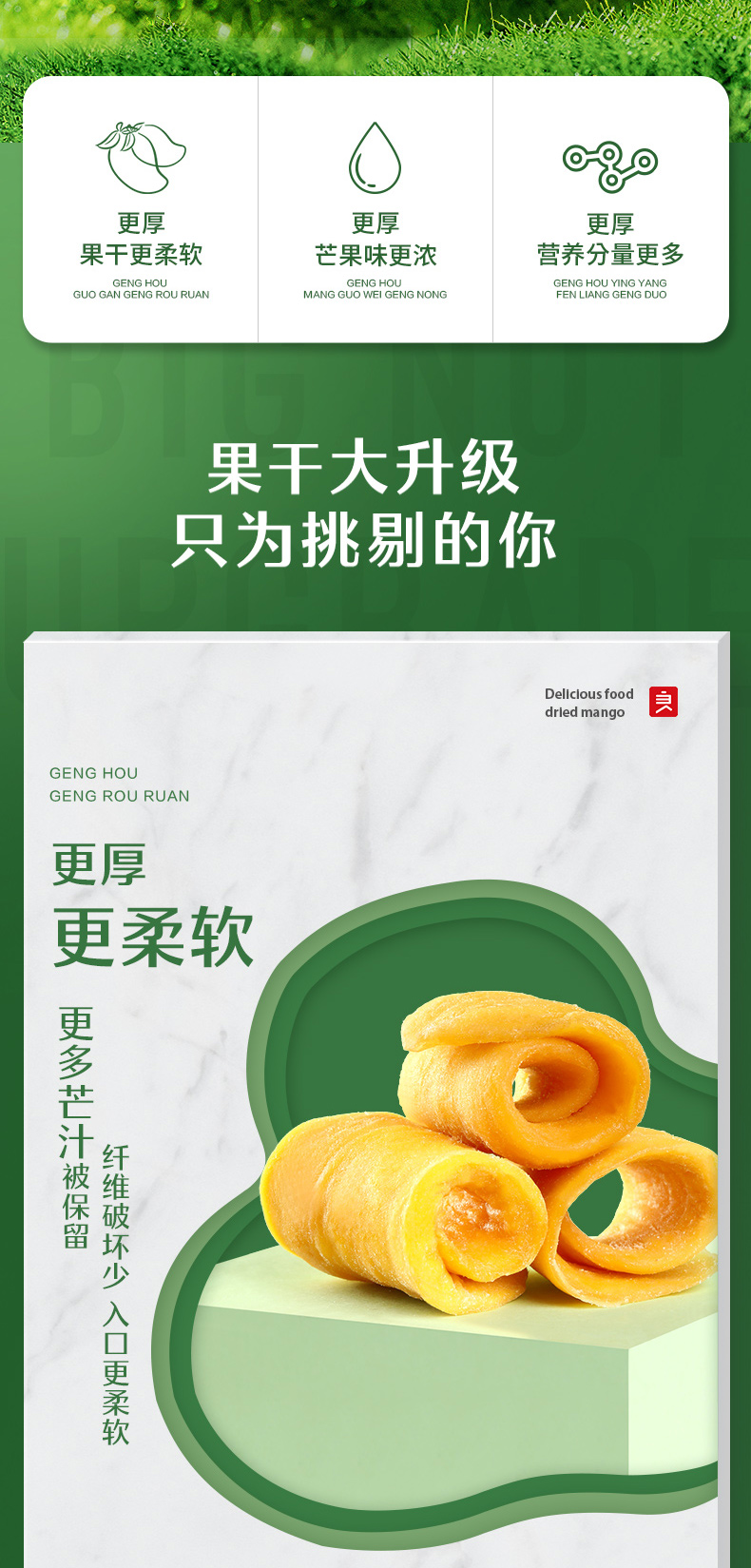 天猫良品铺子旗舰店32.9元,可领13元优惠券,实付19.9元到手,优选东南亚芒果,当地采摘,当天制成,约27小时高低温循环慢烘,0蔗糖添加 ,浓缩果香更浓郁,酸酸甜甜,让你吃了还想吃~