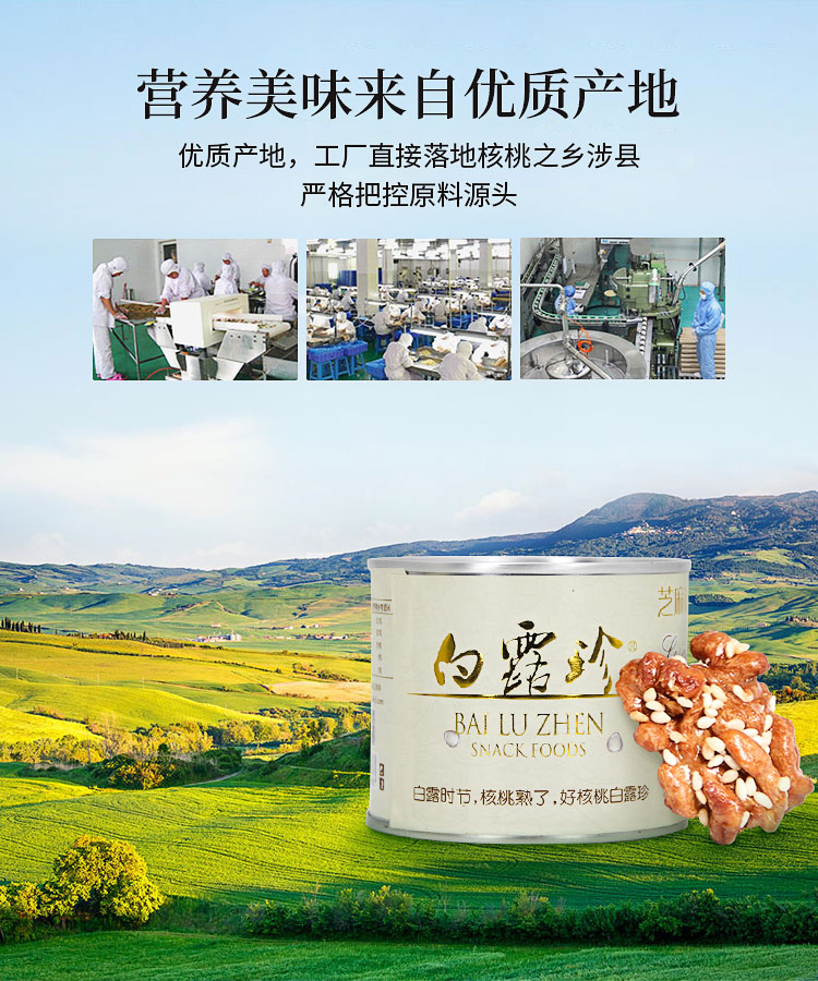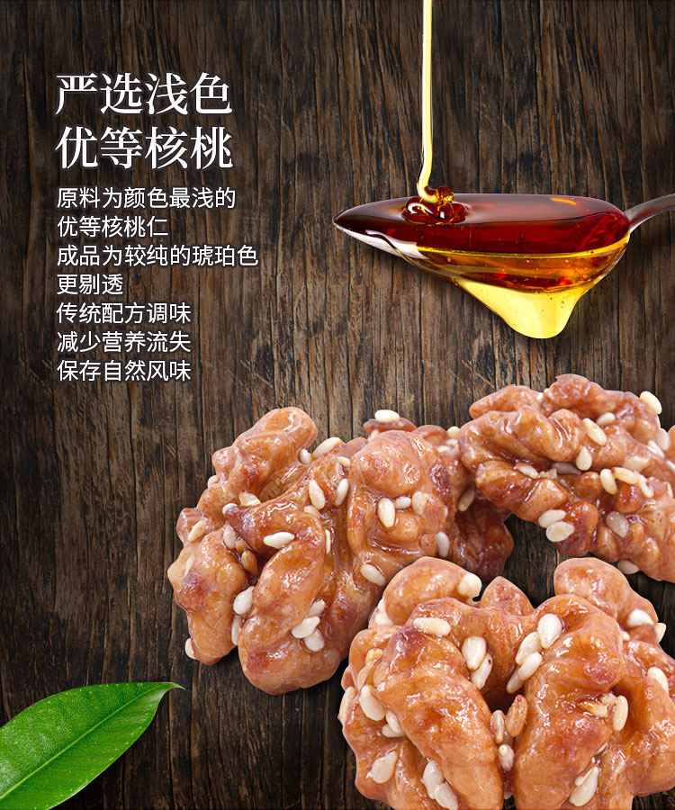白露珍琥珀核桃仁,精选太行山核桃,果仁饱满,外层包裹着一层糖浆,色泽红润油亮,中和核桃的苦味,入口甘甜酥滑,不添加添加剂和防腐剂,健康营养小零食。有琥珀、椰蓉、芝麻3种口味,可随意选择。