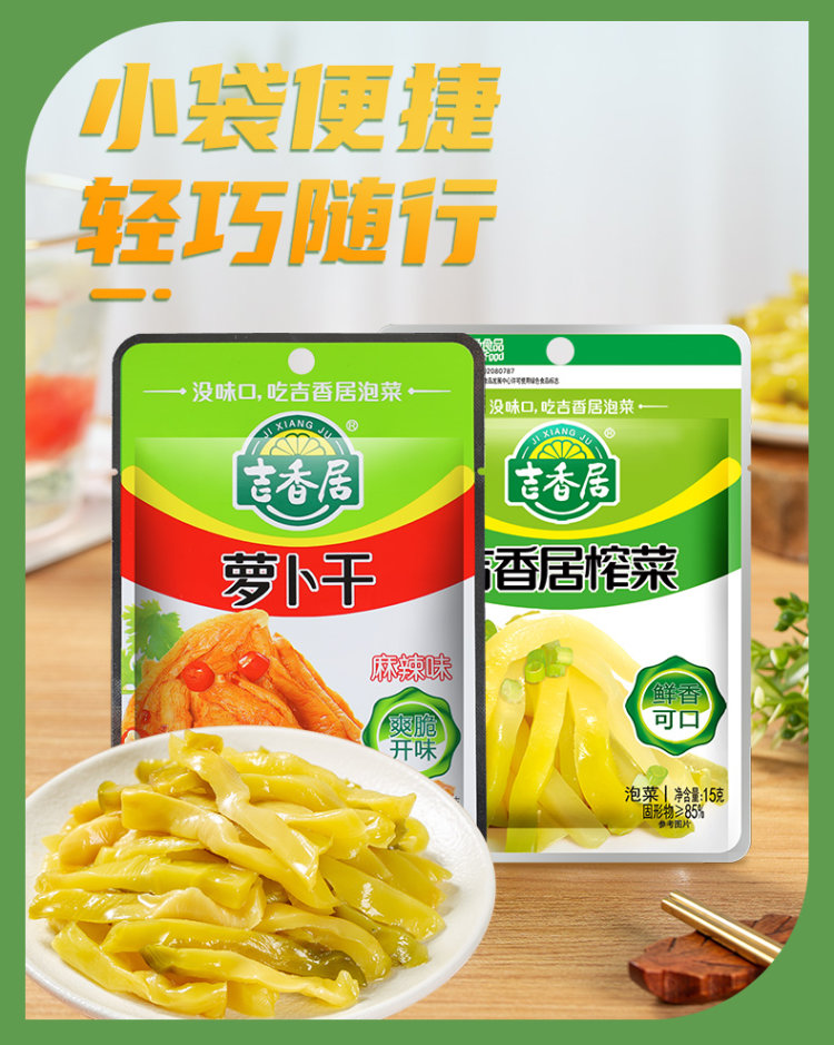 天猫吉香居食品专营店14.9元,可领5元优惠券,实付9.9元到手,是正价32元的3.1折;自有基地直采榨菜,川式泡菜技艺。吉香居开味下饭菜榨菜,清淡爽口,鲜香脆嫩,可搭配各种吃法,餐餐到位,回味无穷!小包装更方便携带,干净卫生!领券链接点此