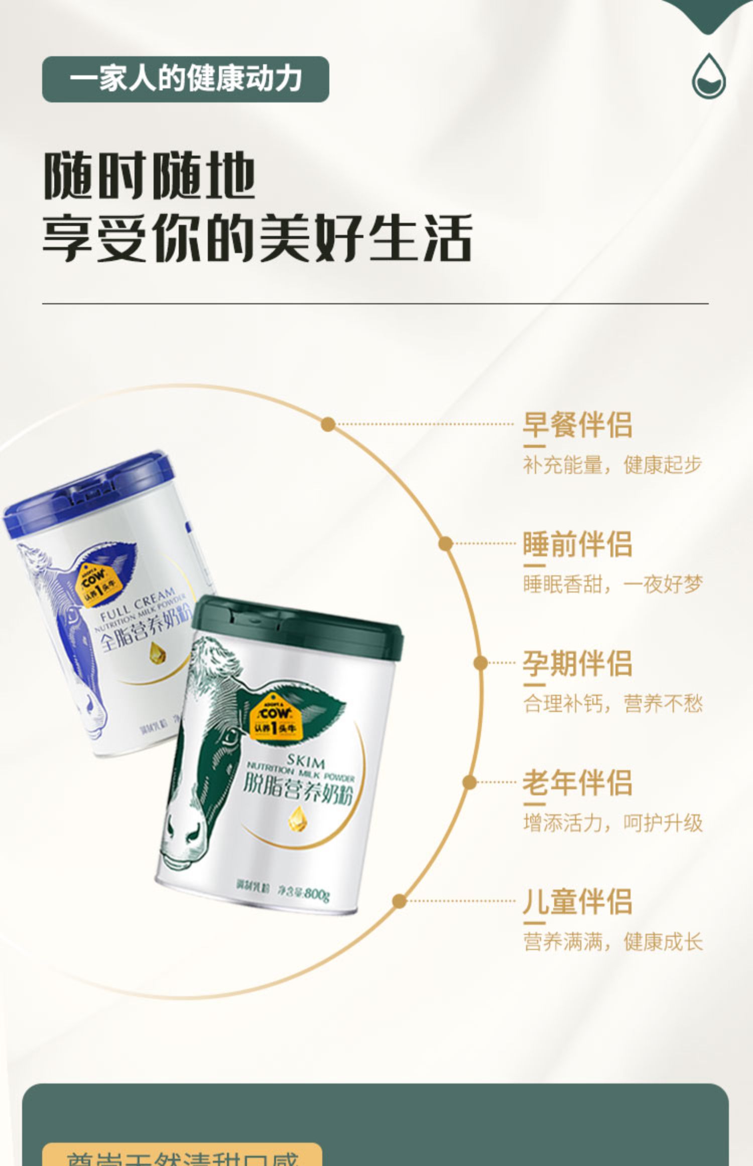 天猫认养一头牛旗舰店189元,可领30元优惠券,实付159元到手。这款 认养一头牛 营养全脂奶粉,规格: 800g,优质荷斯坦纯种奶牛,8倍鲜奶浓缩,入口香浓纯正,口感甜美,三效降膜浓缩,减少营养损失,特别添加菊粉成分,助力肠胃健康。