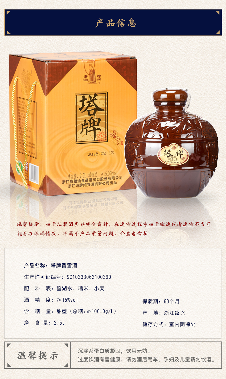 作为具有五十多年历史出口品牌的塔牌绍兴酒,其出口量在绍兴黄酒企业中雄踞榜首,是绍兴酒的重要出口基地。塔牌绍兴酒多次获得国内外金奖,并被认定为“中国驰名商标”、”中国品牌“、”国家地理标志产品“等荣誉称号,是业内最早获得”中华老字号“称号的品牌。