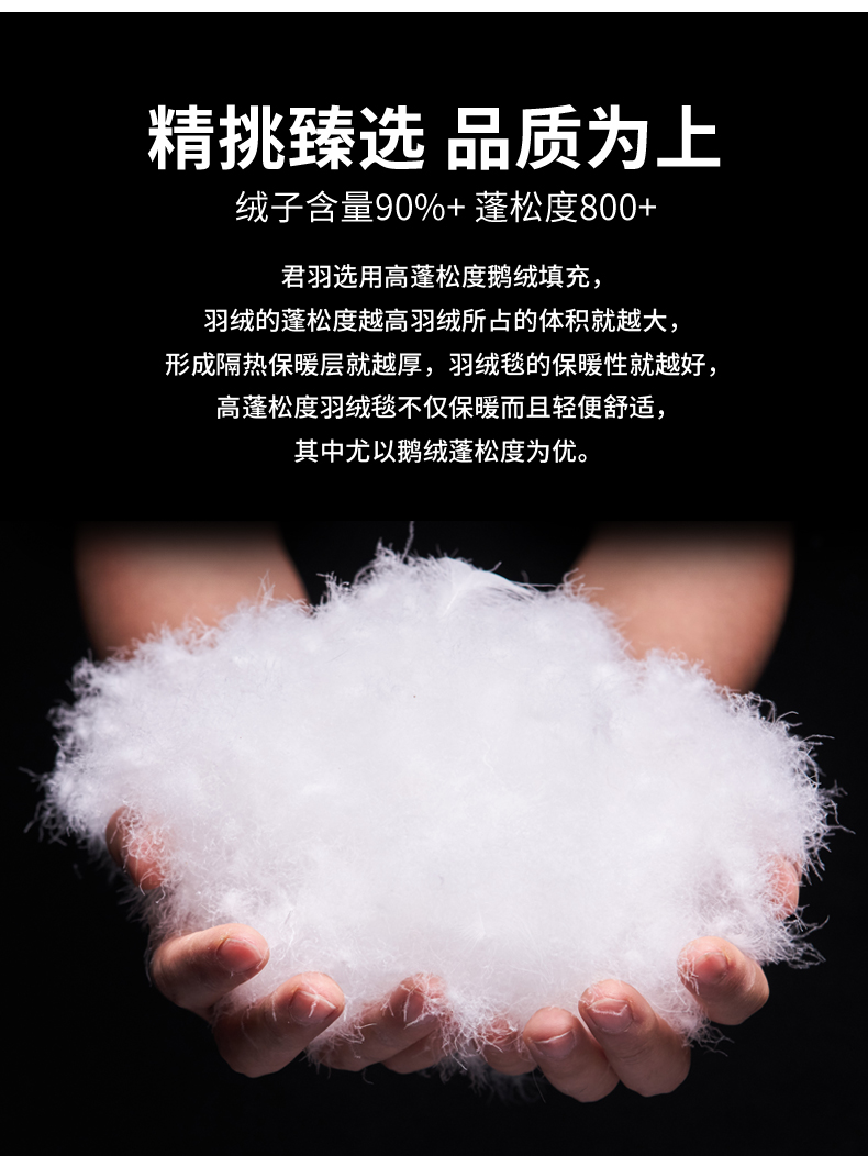「鹅绒」800蓬鹅绒成本约是普通鸭绒的10倍,没有鸭毛的腥味,保暖效果更好;「45克 800蓬鹅绒」≈「58克 700蓬普通鹅绒」≈「83克普通鸭绒」。