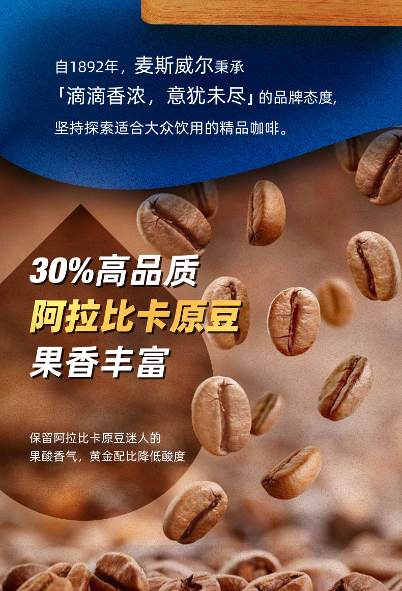 麦斯威尔,是享誉全球的百年咖啡品牌。前美国总统罗斯福首次品尝到麦斯威尔咖啡时,大赞“滴滴香浓,意犹未尽”(Good to the last drop),他的高度赞誉成为麦斯威尔咖啡一贯遵循的标准。自此,麦斯威尔坚持向消费者提供最优质的咖啡。