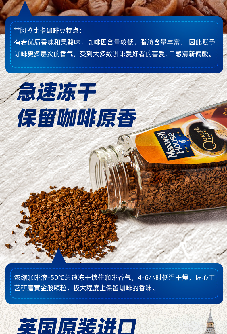 天猫麦斯威尔旗舰店129元,可领30元优惠券,实付99元到手,规格为100g*2罐,下单赠送咖啡杯。英国原装进口,甄选阿拉比卡原咖啡豆,-50度即食冷冻干燥技术,经过4-6小时匠心工艺,保留咖啡原香,口感不偏酸,更适合亚洲人口味。